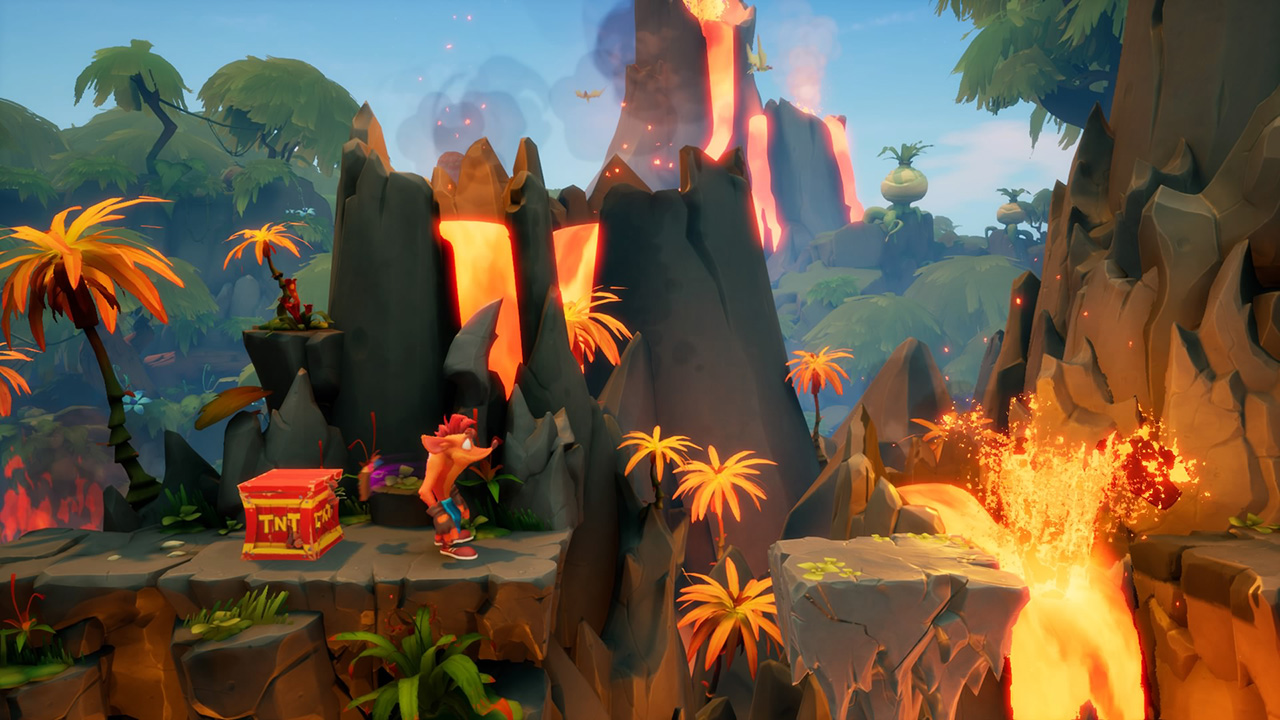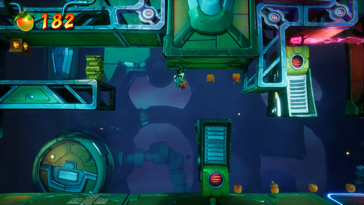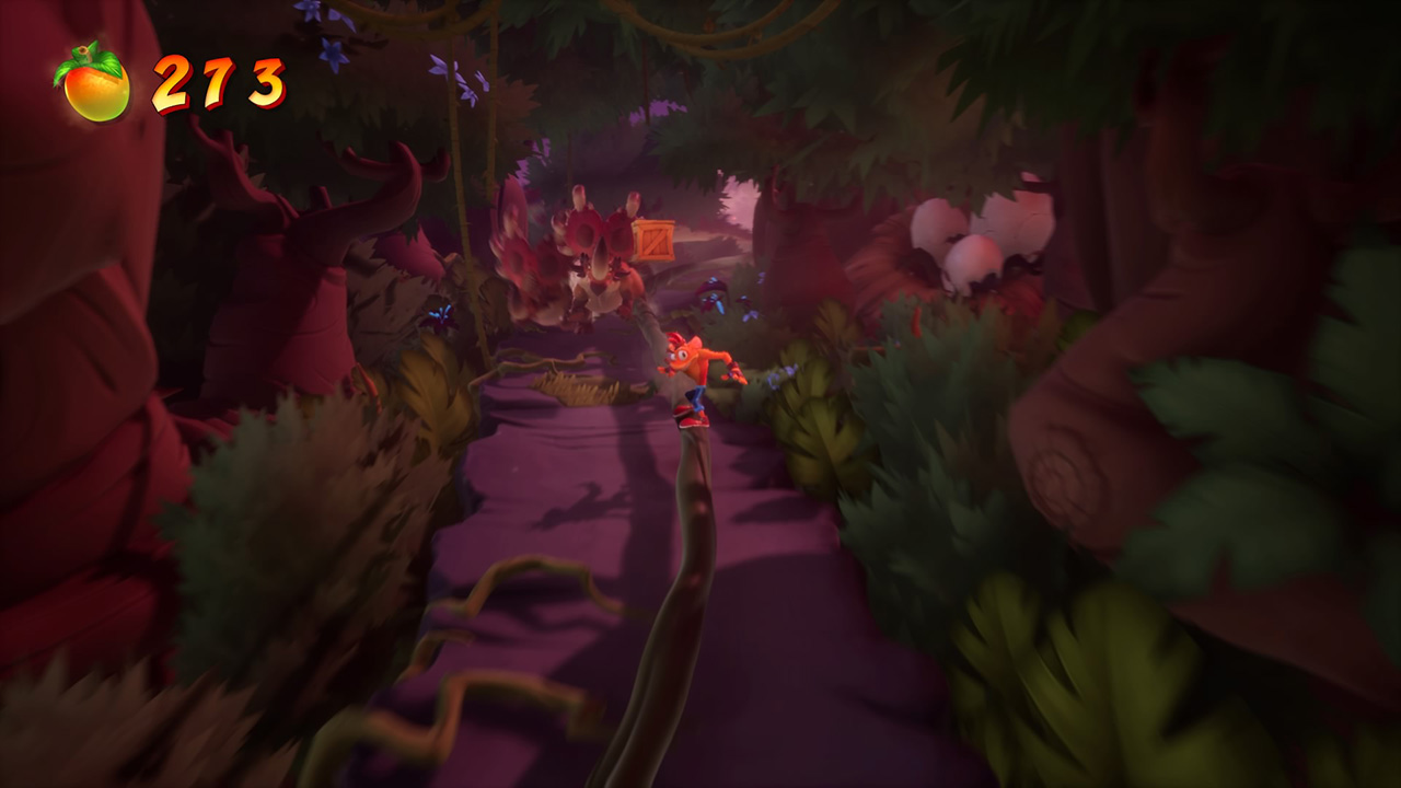 این موضوع، در کنار عمق نامشخص در بسیاری از مواقع، باعث میشود تا مرگ غیرمنصفانه نصیب شخصیت اصلی بازی شود. هر چند که حرکت در عمق در فضاهای به ظاهر دو بعدی، میتواند یک نقطهی قوت تلقی شود، اما اگر زاویهی دید طراحی مناسبی نداشته باشد، دقیقا همین مسئله به یک پاشنه آشیل تبدیل میشود. متاسفانه این ضعف در بسیاری از مراحل بازی Crash Bandicoot 4 وجود دارد و ممکن است در کمال ناباوری، کرش را از دست بدهید.
