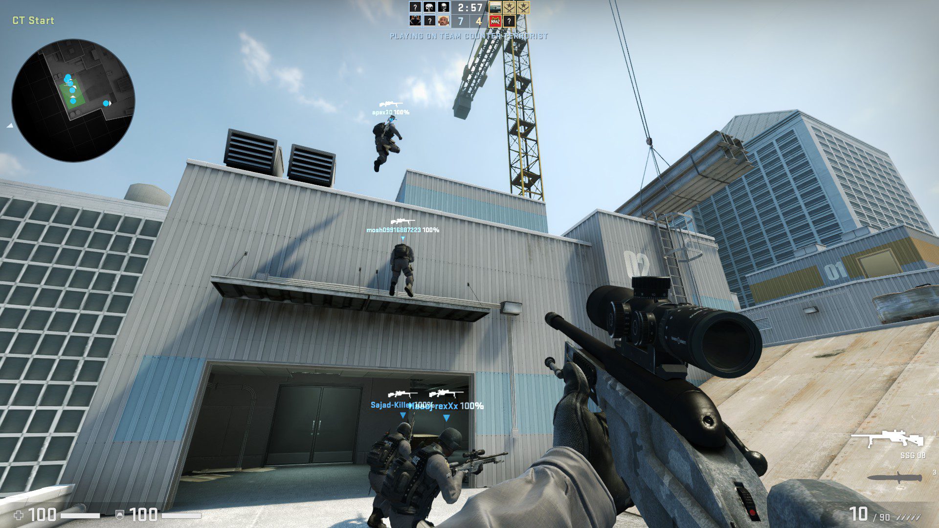 این حالت شاید آرکیدیترین تجربهای باشد که در CS:GO میبینید. در این حالت تمام بازیکنان (که در دو تیم پنج نفره تقسیم میشوند) تنها سلاح تکتیرانداز SSG 08 و چاقو در اختیار دارند. ویژگی جالب این حالت، کاهش جاذبه است که در نتیجه بازیکنان میتوانند پرشهای بلندتری داشته باشند. در کنار این مورد، مانور بیشتری در هوا دارید و راحتتر از معمول میتوانید در هوا نشانهگیری کنید.