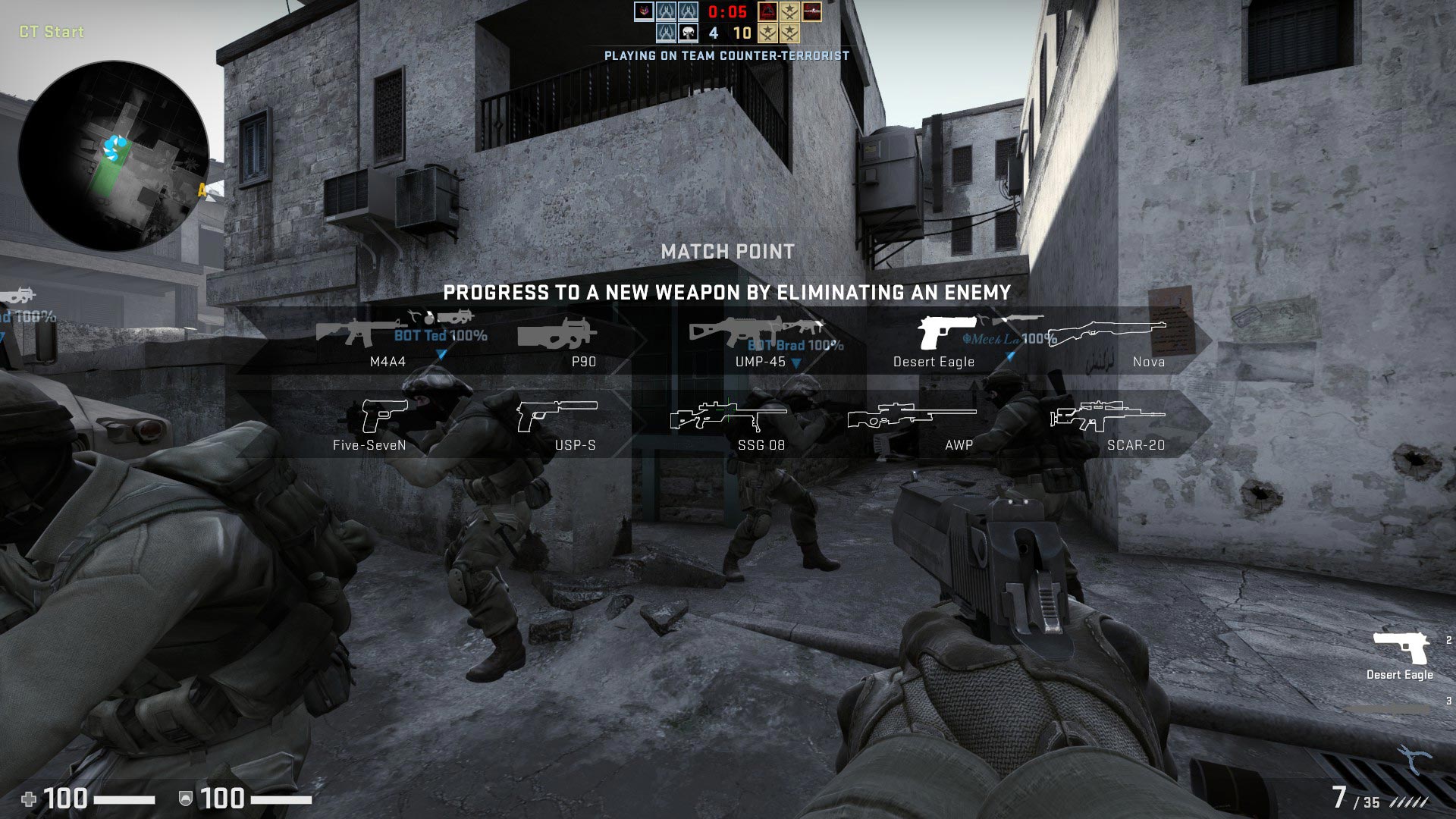 شبیهترین حالتی که در بازیهای دیگر به Arms Race میتوانم مثال بزنم، حالت Gun Game در سری Call of Duty است که البته یکسری قوانین متفاوت نسبت به آن دارد. در حالت Arms Race مثل Team Deathmatch دو تیم تروریست و کانتر تروریست روبروی هم قرار دارند و هدفشان کشتن یکدیگر است. در عین حال هر بازیکن یک هدف فردی هم دارد که همان هدف اصلی این حالت محسوب میشود؛ رسیدن به بالاترین سطح و کشتن یک دشمن با چاقوی طلایی. حالا چگونه باید به این سطح رسید؟