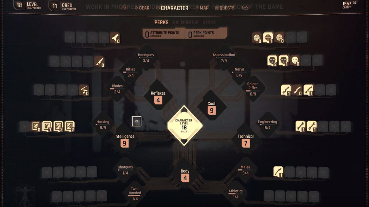 همانطور که اشاره شده، در بخش Body شما میتوانید قدرت کاراکتر را بیشتر کنید. قطعا در نبردهای تن به تن، ارتقای این ویژگی میتواند برای افزایش شانس پیروزی در نبردها راهکار خوبی باشد. بخش Intelligence باعث میشود تا وی، قهرمان داستان بتواند خیلی سریعتر، چیزهای ذهنی مثل روشهای هک کردن را یاد بگیرد. بخش Reflexive همان عنصر dexterity در سایر بازیهای نقشآفرینی مثل دارک سولز است که در فارسی به «چابکدستی» نیز ترجمه شده است. با افزایش این قابلیت، وی مهارتهای ورزشکاری پیدا میکند. بخش Technical نیز مربوط به سختافزارهای دنیای سایبرپانک است. شما با ارتقای این بخش میتوانید انواع و اقسام دستگاه و سختافزارهای تکنولوژی را تعمیر کنید. عنصر Cool نیز کارکردی شبیه به کاریزما را دارد. با این حال اگر درجهی خونسردی وی را بیشتر کنید، در انجام عملیاتها به صورت مخفیانه شانس بیشتری خواهید داشت و شانس ضربات مهلک (critical attack) وی نیز به طرز قابل توجهی افزایش مییابد.