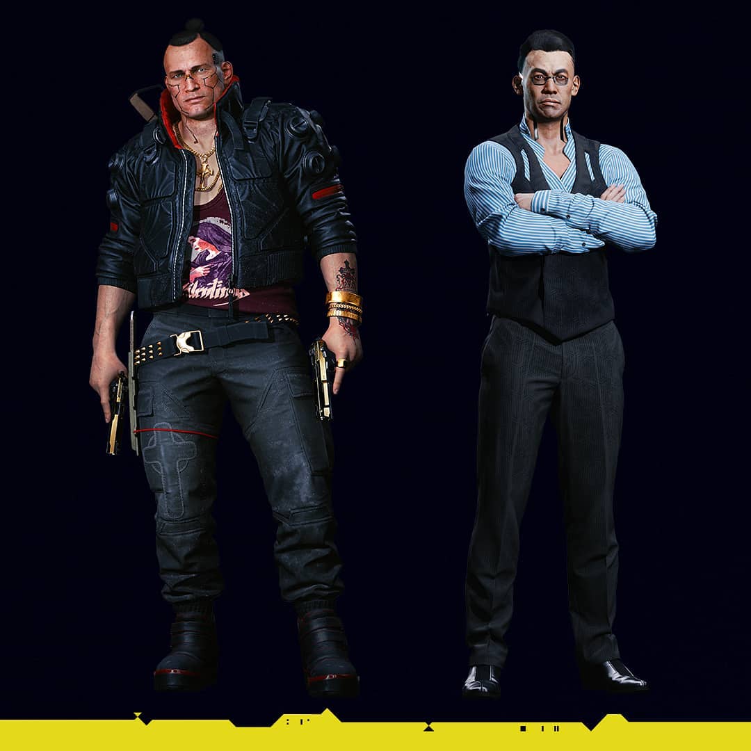 تقریبا همزمان با انتشار مصاحبهی مکس پیرز با مجلهی Edge، اکانت اینستاگرام Cyberpunk دو تصویر جدید از شخصیتهای حاضر در این بازی را به اشتراک گذاشت. در بخش کپشن هم توضیحاتی دربارهی آنها ارائه شده است. اولین تصویر جکی ولز و یورینوبو آراساکا را نشان میدهد. جکی ولز در دوران نوجوانی به گروه خلافکاری Valentinos پیوسته بود اما پس از اینکه مادرش متوجه شد، از عضویت در گروه کنار کشید. وفاداری، دوستی و خانواده مفاهیم مهمی برای جکی به شمار میروند. یورینوبو آراساکا، فرزند سابورو آراساکا است اما پس از یک جر و بحث ارتباط خود را با پدر قطع کرد. او میخواهد امپراتوری پدرش را نابود کند.