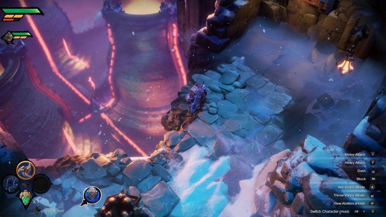 بازی Darksiders Genesis اثر به شدت سرگرمکنندهای است و این گزاره را میتوان در همان مرحلهی اول به خوبی احساس کرد. بازی از همان نقطهی صفر ماجرا به ما میفهماند که هر زمان دلمان بخواهد میتوانیم در نقشهی بازی، بین دو سوارکار، یعنی War و Strife سوییچ کنیم. همانطور که از نام بازی پیداست، وقایع داستانی به قبل از رویدادهای نسخهی اول دارک سایدرز برمیگردد. درست زمانی که لوسیفر تصمیم گرفته تا توازن را برهم بزند و شورای سوخته به دو سوارکار دستور میدهد جلوی لوسیفر را بگیرند. در طول تقریبا ۱۰ ساعت گیمپلی، مخاطب وظیفه دارد برای این هدف در نقشههای کوچک و بزرگِ دنیای بازی بچرخد.
