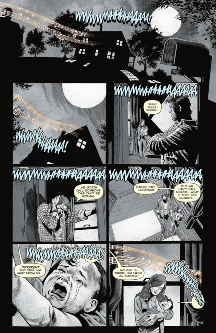 اما این موسیقی فقط به فضا نمیرود؛ بلکه بیبی کال-ال، همان کلارک کنت نوزاد، آن را میشنود. مارتا و جاناتان کنت که از گریههای بیوقفهی فرزند خواندهی خود خسته شدهاند، ناگهان شاهد معجزهای میشوند. موسیقی لکس لوتر باعث آرام شدن نوزاد (سوپرمن) میشود. آنها که از نگرانیهایشان برای مراقبت از این کودک غیرزمینی رها شدهاند، این لحظه را بهعنوان معجزهای واقعی میپذیرند. درحالیکه لکس در گوشهای از دنیا، غمگین و تنها، از تأثیر شگفتانگیزی که بر زندگی آیندهی بزرگترین دشمنش گذاشته، بیخبر است.