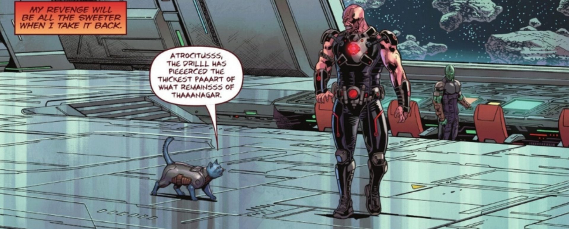 در شماره دوم کمیک Green Lantern Corps خوانندگان بار دیگر با دو شرور مخوف یعنی Atrocitus و Dex-Starr روبهرو میشوند. اما این بار با چهرهای متفاوت. Atrocitus دیگر زره قرمز درخشان همیشگی خود را بر تن ندارد و از حلقه قدرت نیز خبری نیست. او اکنون لباسی کاملاً مشکی با زرههایی متشکل از هستههایی قرمزرنگ به تن دارد. از سوی دیگر، Dex-Starr، گربه قاتل دنیای دیسی، نیز لباس جدیدی به تن دارد. یعنی ترکیبی از رنگهای سیاه و قرمز است و دیگر هیچ نشانی از نماد قدیمی Rage Corps روی آن دیده نمیشود.