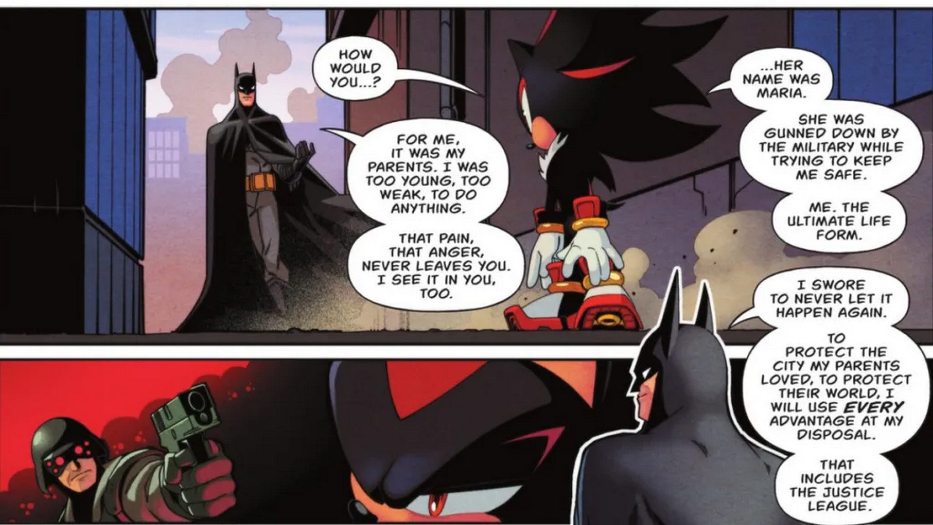 در کراساور جذاب DC x Sonic the Hedgehog #1 لحظهای احساسی بین بتمن و شدو خارپشت رقم میخورد که نشان میدهد این دو شخصیت بیش از آنچه تصور میشد، نقاط مشترک دارند.