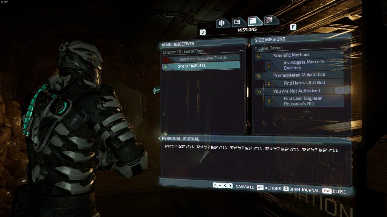 فردی در فروم ردیت با نام کاربری Rios7467 متوجه یک دستخط ویژه از Unitology در بازی شده که به طرز هوشمندانهای در رابط کاربری بازی پنهان شده است؛ در واقع استودیوی Motive از نوعی الفبای خاص استفاده کرده که در نسخههای قبلی سری فضای مرده شاهد آن بودیم. با برگرداندن متن خاص پنهان شده به زبان انگلیسی، متوجه عبارت “خاموشش کن” میشویم که اشاره به بازی Dead Space 3 دارد. در ابتدا تصور میشد که این پیغام از سوی یک نژاد بیگانه قدیمی فرستاده شده است، اما آیزاک (Isaac) در نهایت میفهمید که پیغام مذکور از سوی یک نکرومورف (Necromorph) عظیمالجثه ارسال شده تا مردم را جهت بازگشت وی به زندگی راهنمایی کنند.