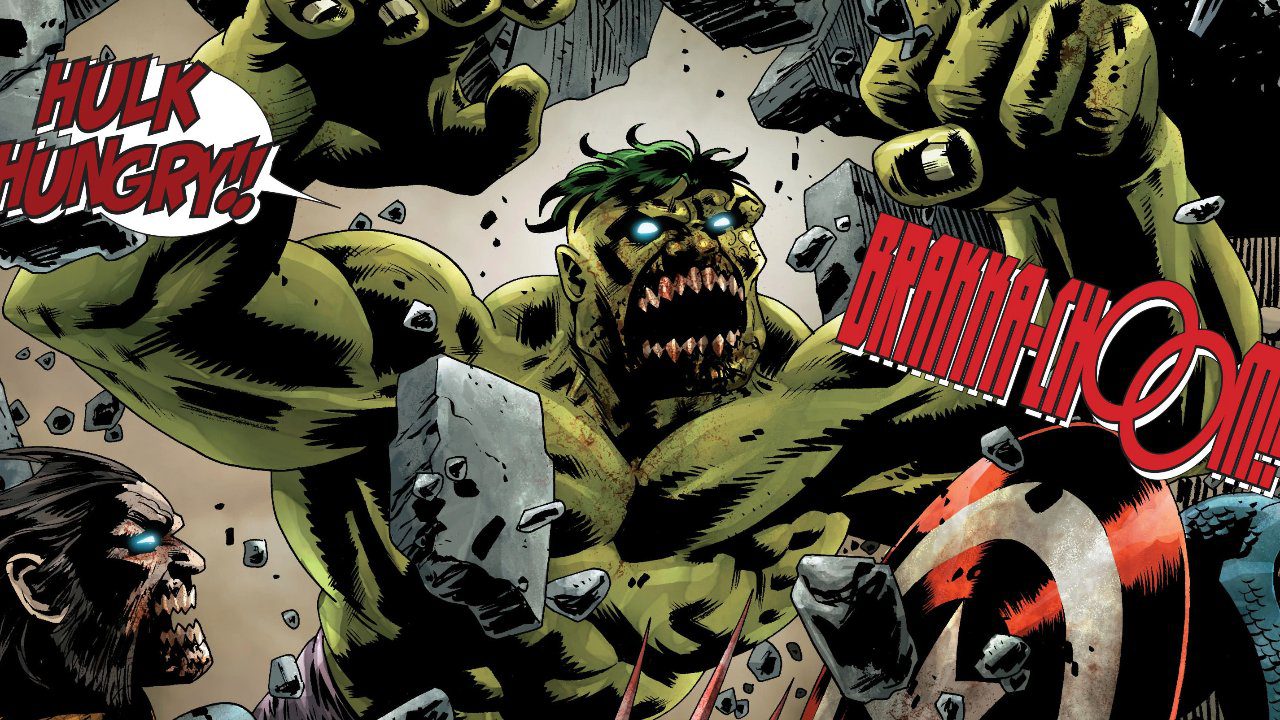 زامبی هالک برداشت مجموعه کمیک بزرگ و مشهور Marvel Zombies از هیولای سبز خشمگین دنیای مارول است. وقتی بروس به ویروسی ناشناخته مبتلا میشود، علاوه بر خودش، هالک را نیز درگیر میکند و موجودی خشن، بیرحم و خطرناک را بهوجود میآورد. انتقام جویان برای تحقیق سر میرسند اما بلافاصله توسط هالک آلوده میشوند. پس از تکمیل تحول، زامبی هالک با بلعیدن سیلور سورفر و گالاکتوس، آنها را به قتل میرساند و درنهایت با استفاده از قدرت کیهانی گالاکتوس، کل دنیا را با خاک یکسان میکند.