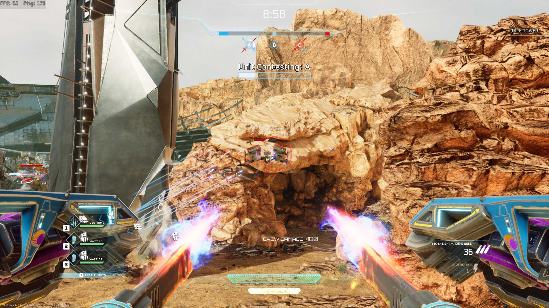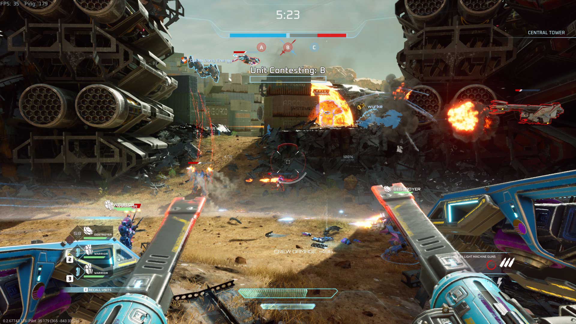 اگر بخواهم گیمپلی Disintegration را توصیف کنم، با یک شوتر اول شخص تاکتیکی طرف هستیم؛ یک نیمهی گیمپلی را کنترل سفینه و سلاحهایش تشکیل میدهد و نیمهی دیگر را مدیریت گروه مبارزان به طور کلی اگر بخواهم گیمپلی Disintegration را توصیف کنم، با یک شوتر اول شخص تاکتیکی طرف هستیم؛ یک نیمهی گیمپلی را کنترل سفینه و سلاحهایش تشکیل میدهد و نیمهی دیگر را مدیریت گروه مبارزان. گانپلی بیشتر به عناوینی چون Hawken و هدایت تایتانها در Titanfall شباهت دارد و همین مورد در کنار وجه تاکتیکی، باعث میشود تا ریتم کندتری نسبت به بازیهای چندنفرهی محبوب این روزها داشته باشد. از بحث گیمپلی که بگذریم، تست بتا در بحث فنی جای بحث داشت؛ من این تست را روی PC تجربه کردم و به نظر میرسد به سیستم آنچنان قدرتمندی برای اجرایش نیاز نداشته باشید و با یک پردازندهی ۴ هستهای متوسط، ۸ گیگ رم و کارت گرافیکی همقدرت با GTX 950 روی تنظیمات High راحت ۶۰ فریم بگیرید. مشکل اینجاست که گرافیک روی تنظیمات High به خصوص بهواسطهی Anti-Aliasing یک حالت محوی دارد، انگار که همهچیز Blur شده باشد و بخواهند کهنگی گرافیک را بپوشانند. خلاصه که حداقل اگر بخواهید یک نتیجهی مناسب از لحاظ بصری ببنید باید به سراغ بالاترین درجه یعنی Epic بروید که آنهم باز چیز دندانگیری نیست. بازی در کل راندمان مناسبی حتی در صحنههای شلوغ نشان داد، اما باگ گیر کردن زیر نقشه طی سه ساعت تجربه برایم سه بار رخ داد که انگار باگ معمولی در تست بتا بود و حتما سازندگان آن را در نسخهی نهایی رفع خواهند کرد.