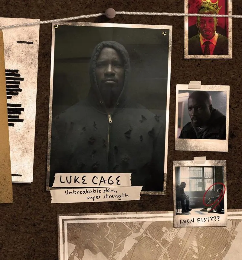 در تصویر چهارم، عکسی از لوک کیج مایک کولتر (Mike Colter) را میبینیم در حالی که به قدرت فوقالعاده و پوست بهشدت سختش اشاره میشود. همچنین در کنار مدافع هارلم، عکس ماهرشالا علی (Mahershala Ali) در نقش کاتنموث را میتوان مشاهده کرد.
