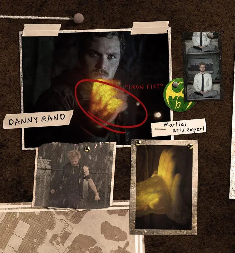 در تصویر آخر، آیرون فیست فین جونز (Finn Jones) را میبینیم که انرژی “چی” خود را در مشتش متمرکز کرده و بهعنوان استاد هنرهای رزمی توصیف شده است. همچنین نماد اژدهای کان لان که با رنگهای نمادین آیرون فیست مزین شده هم میتوان مشاهده کرد.