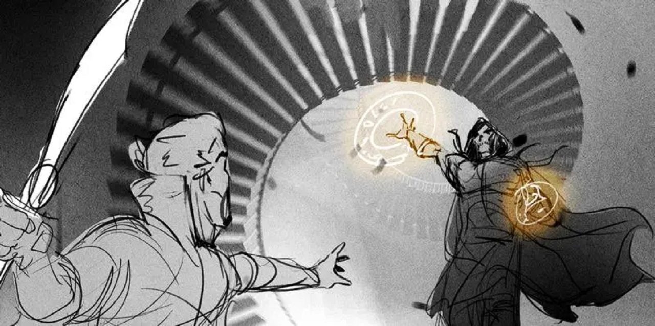 این تصاویر که توسط سورن بندت (Soren Bendt)، طراح استوریبورد منتشر شده است، نگاهی به یک شخصیت شرور مرموز را ارائه میدهد که در مقابل دکتر استرنج با بازی بندیکت کامبربچ (Benedict Cumberbatch) در فیلم Doctor Strange in the Multiverse of Madness قرار گرفته است. شما در زیر میتوانید این تصاویر منتشر شده را مشاهده کنید:
