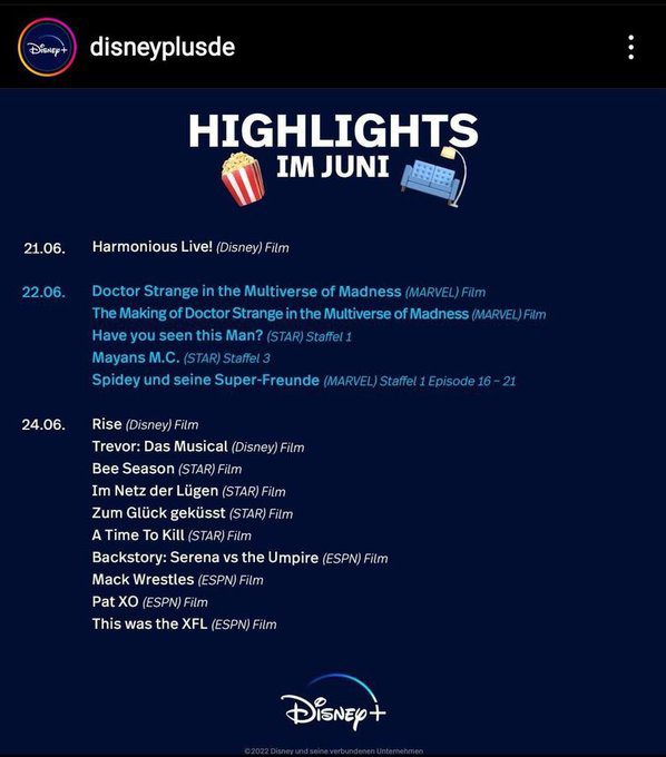 لازم به ذکر است که نه تنها هیچ حساب دیزنی پلاس دیگری تاریخ گزارش شده را تایید نکرده است، بلکه پست اصلی اینستاگرام دیزنی پلاس آلمان که تاریخ پخش نسخه بلوری این اثر را اعلام کرده بود، حذف شد. اگرچه ممکن است عجیب به نظر برسد که فیلمی با عظمت دنباله Doctor Strange به این زودی در سرویسهای استریم پخش شود، اما مطابق با برخی از فیلمهای موفق اخیر که به پلتفرمهای استریم راه پیدا کردهاند، مانند Death on the Nile و The. King’s Man، بعید نیست که دکتر استرنج ۲ نیز تنها پس از گذشت یک ماه از اکران آن در سینما توسط دیزنی پلاس منتشر شود. علاوه بر این، عناوین دیگر دنیای سینمایی مارول مانند فیلمهای Shang-Chi و Eternals تنها پس از گذشت دو ماه بعد از نمایش در صفحه بزرگ سینما به دیزنی پلاس آمدند.