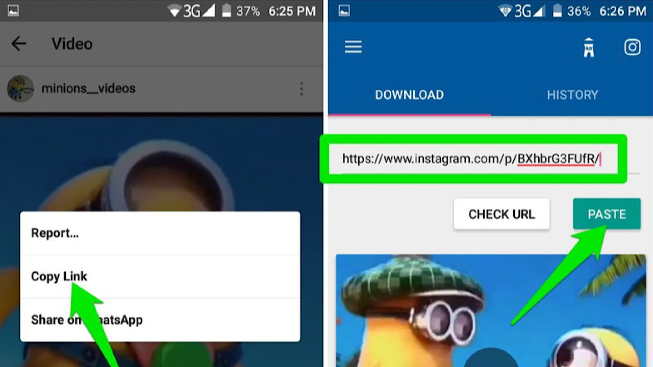 در گوشه بالا سمت راست سه نقطه به صورت عمودی قرار گرفتهاند که با لمس آنها میتوانید گزینه Copy link را مشاهده و لمس کنید. پس از آن نرم افزار Video Downloader for Instagram را اجرا کرده و در کادر بالای صفحه لینک کپی شده را قرار دهید و گزینه Paste را انتخاب کنید. سپس ویدیو به صورت خودکار دانلود و در بخش گالری دستگاه شما ذخیره میشود.