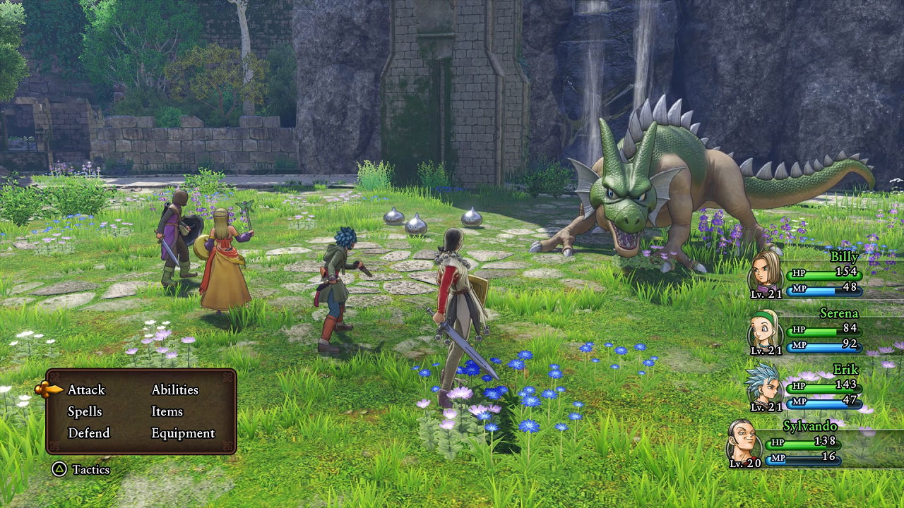 سبک و سیاق بازی Dragon Quest XI S: Echoes of An Elusive Age در همان نگاه اول تا حدی قابل فهم است. حالت چهره کاراکترها و تقریبا همان باکس آرت بازی این موضوع را فریاد میزند که با یک عنوان JRPG کلاسیک سروکار داریم. برهمین اساس میتوان گفت بازی Dragon Quest XI S: Echoes of An Elusive Age گیمرها را با زرق و برق الکی فریب نمیدهد. این به خودی خود یک نکته مثبت به حساب میآید و افرادی سراغ این عنوان میآیند که تکلیفشان با خودشان مشخص است. گیم پلی در Dragon Quest XI همان چیزی است که از یک بازی در ژانر نقش آفرینی ژاپنی انتظار دارید. مبارزات به صورت نوبتی انجام گرفته و با این که قابلیت حرکت در محیط نبرد به نسخه سوییچ افزوده شده اما در عمل تاثیری در روند مبارزات ندارد. برخلاف عنوانی مانند Ni No Kuni که با حرکت در میدان نبرد میتوانید از برخی حملات فرار کنید، اینجا داستان کاملا متفاوت است و میتوان گفت قابلیت حرکت در مبارزات تنها برای قشنگی و زیبایی به گیم پلی اضافه شده.
