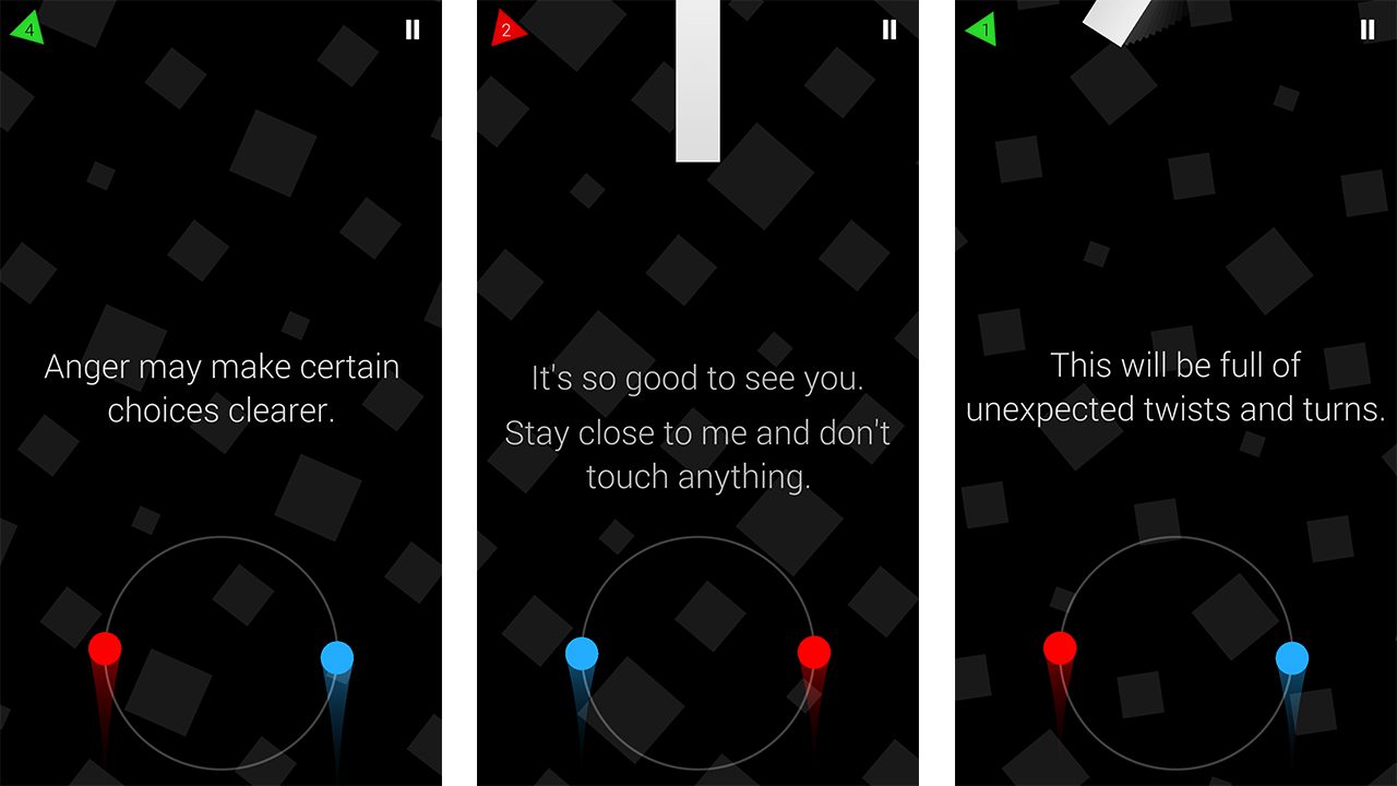 چرا میگوییم Duet یک بازی باهوش است؟ بازیهای باهوش بلدند شما را به نقطه ۱۰۰ عصبانیت برسانند و دقیقا موقعی که میخواهید کنار بکشید، اجازه دهند وارد مرحله بعدی شوید. Duet با ریتمها و صدای راهنما، با مغز شما بازی میکند و نظم خاص و سختی را کمکم بهتان آموزش میدهد. در توضیحات بازی اصلیترین جمله این است: آرامشت را حفظ کن و از همهچیز دور بمان.
