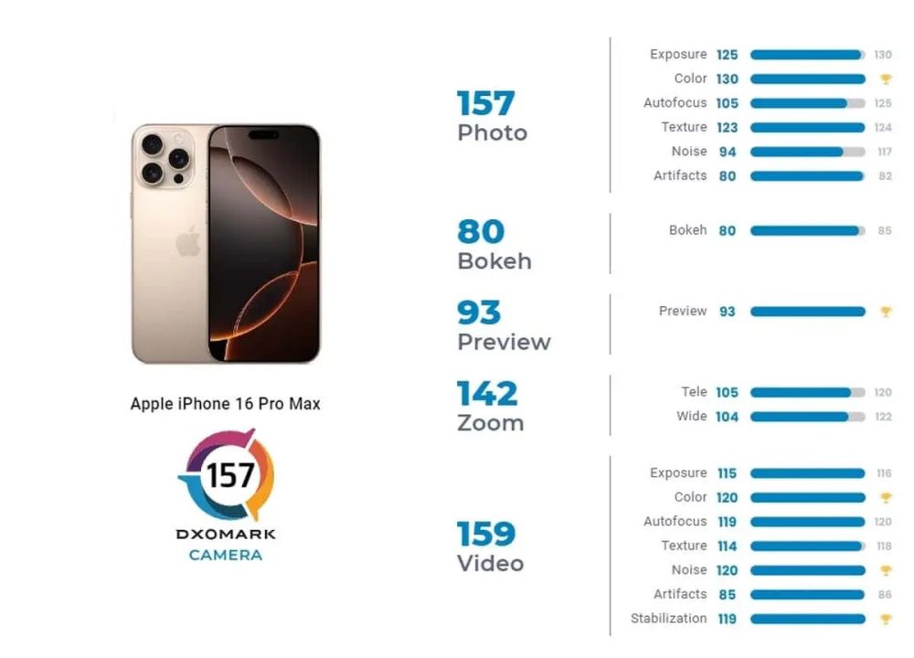 آیفون 16 پرو مکس در تستهای Dxomark چهارم شد!