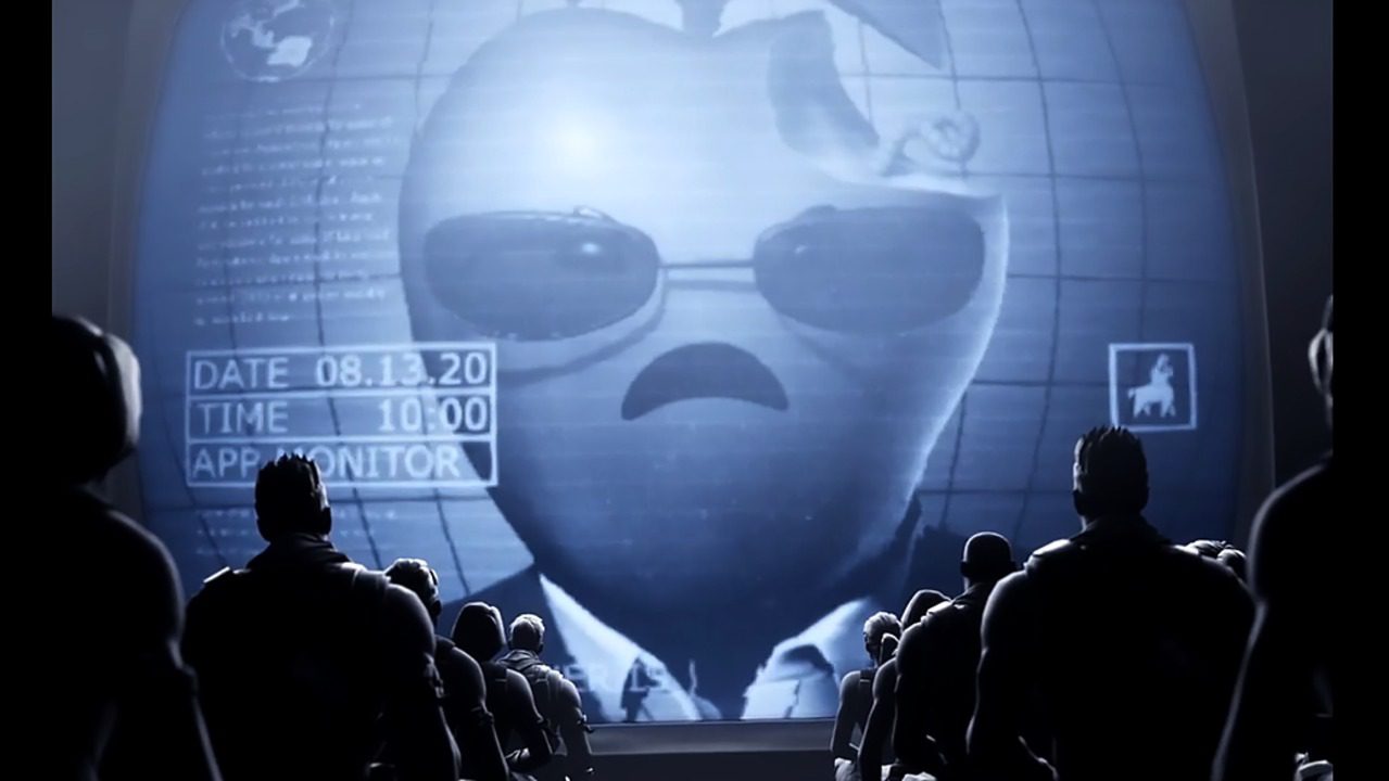 به نظر میرسد اپیک گیمز ارادهی محکمی برای شکست دادن اپل دارد و تنظیم شکایتنامهای مفصل تنها بخشی از نقشههای این شرکت است. اپیک تصمیم گرفته از جامعهی چند ده میلیونی بازیکنان فورتنایت نهایت استفاده را برده و افکار عمومی را هم سمت خود بکشاند. در همین راستا، این شرکت ویدیوی جالبی در قالب یک رویداد در فورتنایت منتشر کرده که انتقادی مستقیم به اپل است؛ این ویدیو که به نوعی یک بازسازی از تبلیغ مشهور «۱۹۸۴» شرکت اپل در داخل فورتنایت به شمار میرود، سیب سخنگوی بزرگی شبیه به لوگوی اپل را روی صفحهای بزرگ نشان میدهد که برای جمعیتی سیاه و سفیدِ افسردهای سخنرانی کرده و از قدرت و سلطهی خود بر زحمات دیگران میگوید. درست همانند تبلیغ اپل، دختری رنگارنگ از راه رسیده و این بار با پرتاب تبر معروف بازی فورتنایت، صفحهای که سیب سخنگو در آن سخنرانی میکند را میشکند. در پایان ویدیو، این پیام پخش میشود: