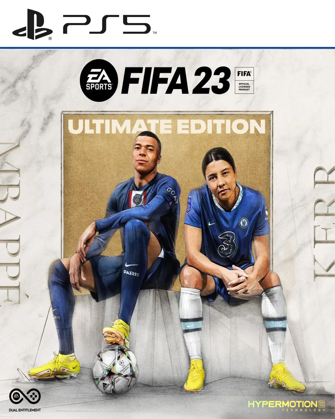 در بازیهای ورزشی، همواره حضور ستارهها در تصویر روی جلد بازی از اهمیت زیادی برخودار است. در سری فیفا، دو سالی است که کیلیان امباپه، ستاره باشگاه پاری سن ژرمن، در کاور نسخههای مختلف بازی به چشم میخورد. این موضوع برای نسخه جدید فیفا نیز صادق بوده و برای سومین بار متوالی شاهد حضور چهره این فوتبالیست حرفهای روی باکس آرت بازی هستیم. با این وجود، به لطف تمرکز الکترونیک آرتز روی فوتبال بانوان و وجود تیمهای سوپرلیگ انگلیس و لیگ دسته یک فرانسه در فیفا ۲۳، در نسخه آلتیمیت بازی چهره سم کر، مهاجم تیم بانوان چلسی، در کنار کیلیان امباپه به چشم میخورد.