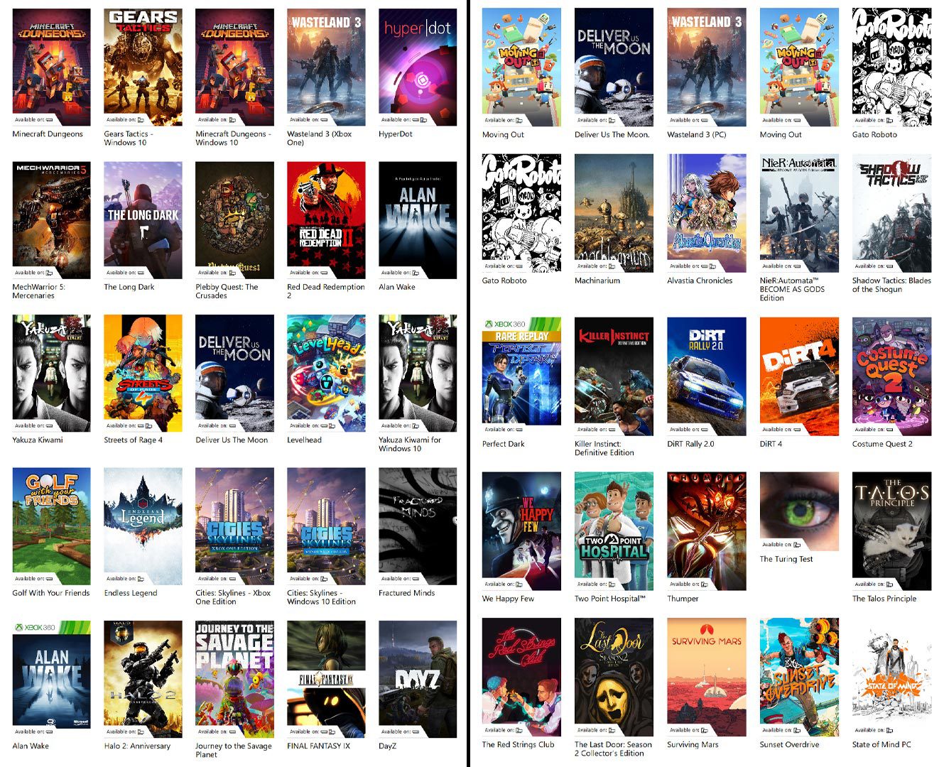 دومین مزیت، متنوع و سیال بودن فهرست بازیهای موجود در آن است. شرکت مایکروسافت طی این سه سال گذشته از زمان عرضهی سرویس، همواره تلاش کرده است تا علاوه بر عناوین باکیفیت، آثار جدید را هم در آن قرار دهد و حتی بازیهای متعددی همزمان با زمان انتشار، در ایکسباکس گیم پس قرار میگیرند. برجستهترین این موارد شاید آثار استودیوهای داخلی خود مایکروسافت باشد. عناوینی چون Gears 5، Forza Horizon 4 و Ori and the Will of the Wisps در همان روز عرضه برای کاربران گیم پس قابل بازی بودند و حتی آثاری که در آینده منتشر میشوند مثل بازی مورد انتظار Halo Infinite هم قرار است از این قاعده پیروی کنند. این تنها محدود به عناوین خود مایکروسافت هم نیست و اقدام مشابهی برای آثاری مثل Streets of Rage 4 و The Outer Worlds انجام شده و قطعا در آینده عناوین بیشتری هم خواهیم دید. بازیهای بسیار محبوبی هم هر چند وقت یک بار به این کاتالوگ راه پیدا میکنند که شاید بهترین مثالش Red Dead Redemption 2 باشد.