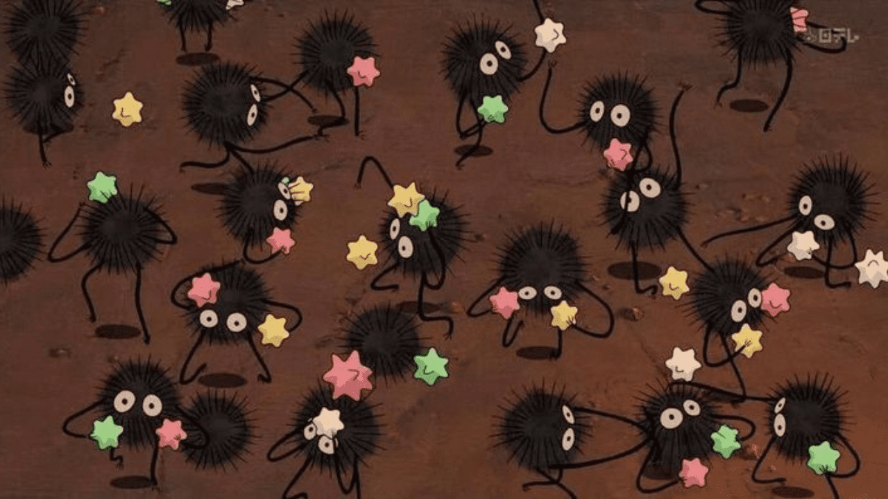 در انیمه شهر اشباح، سوسواتاریها به عنوان زیر دستان شخصیت کامجی (Kamajī) سخت به کار کردن مشغول هستند. او از این موجودات دوده شکل برای گرم کردن حمام ابورایا (Aburaya) و آتش اتاق استفاده میکند. آنها باید برای حفظ طلسمی که به کمک آن زندگی میکنند سخت به کار مشغول شوند، و بابت زحمات خود آبنباتهای ستاره شکل تحویل میگیرند. سوسوتاریها محبوبیت بسیاری را از سراسر جهان جمع کردهاند، و حتی افرادی که طرفدار انیمه نیستند نیز به این موجودات جذب شده و آنها را میپسندند. در نهایت با توجه به این تفاسیر، سوسوتاریها، موجوداتی دوده شکل نیز به عنوان موردی از شخصیت های محبوب انیمه های استودیو جیبلی در این لیست قرار میگیرند.