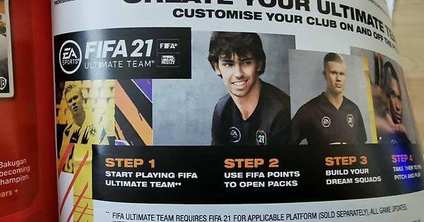 چندی پیش تصویری در شبکهی اجتماعی توییتر منتشر شد که تبلیغ FIFA 21 در یک مجلهی کودکان را نشان میدهد. در نگاه اول، ایرادی دیده نمیشود. به خصوص اینکه شبیهساز ورزشی الکترونیک آرتز هیچ محتوای حساسیتزایی نداشته و برای تمامی سنین مناسب است. با این حال، اگر دقت بیشتری به خرج دهید، متوجه خواهید شد این تبلیغ روی آلتیمیت تیم تمرکز دارد. به بیان دیگر، تبلیغ از کاربران میخواهد پس از تهیهی بازی، به بخش آلتیمیت تیم رفته، با پرداخت فیفا پوینت بستههای بازیکن را خریداری کرده و نهایتا تیم رویایی خود را بسازند. اگر از طرفداران این فرنچایز باشید، باید بدانید که تنها راه دسترسی به فیفا پوینتها، پرداخت پول واقعی و خریداری آنها است.