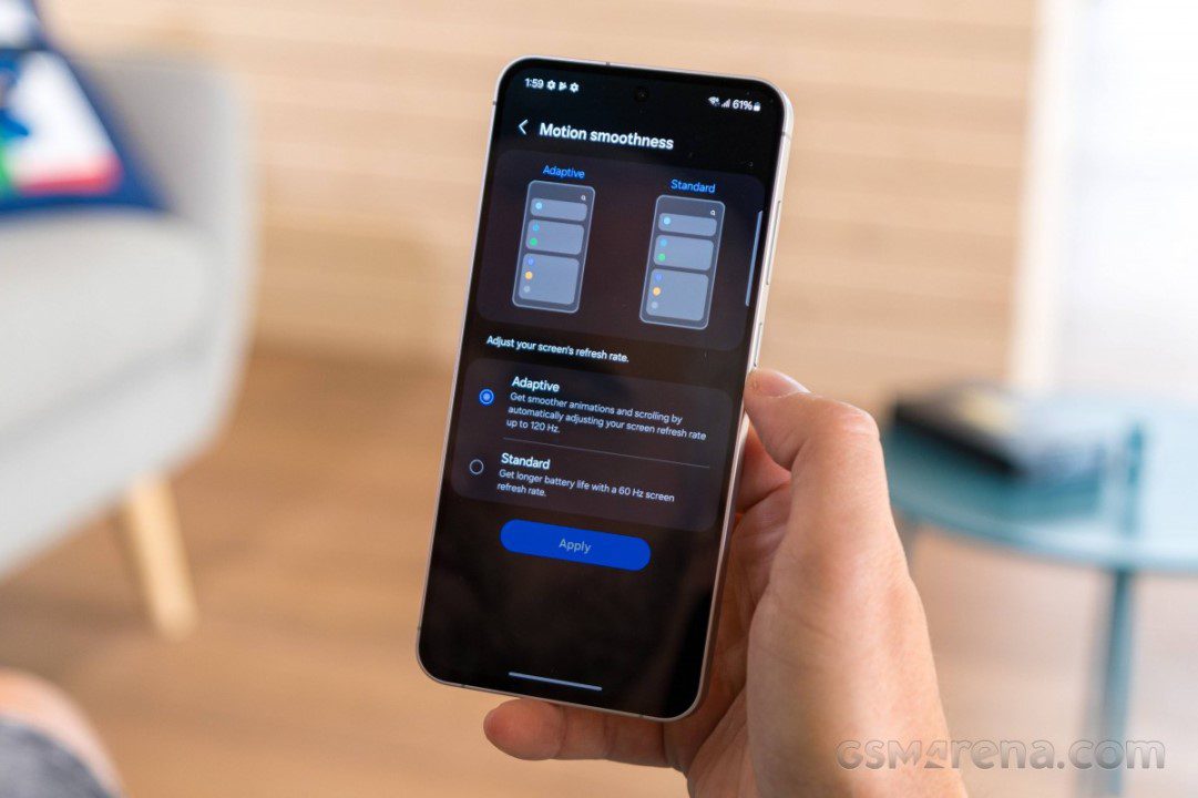 نمایشگر گلکسی S24 FE یک نمایشگر استاندارد (غیر LTPO) است. این نمایشگر از دو حالت Motion Smoothness پشتیبانی میکند: حالت Adaptive و Standard. در حالت Adaptive، نرخ تازهسازی بهطور خودکار بین حالتهای مختلف تغییر میکند و میتواند تا ۱۲۰ هرتز افزایش یابد. در حالی که حالت Standard ثابت بوده و برای صرفهجویی در باتری روی ۶۰ هرتز تنظیم است.