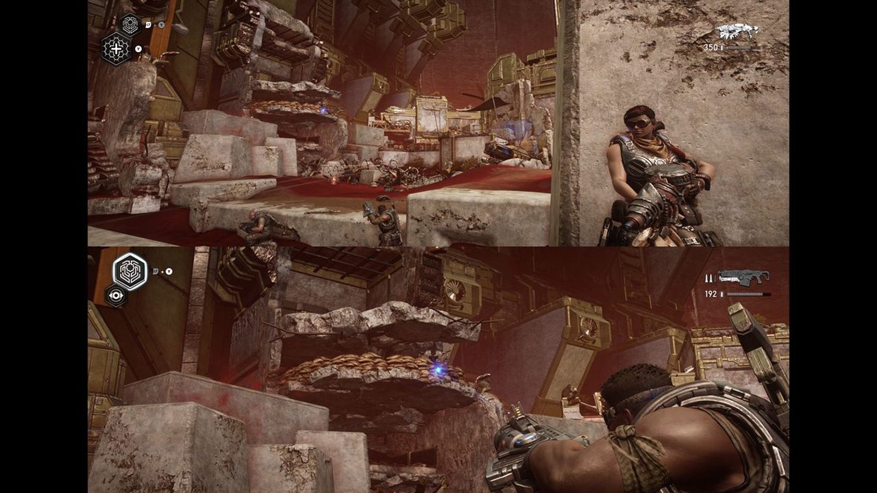 یکی از جذابترین سورپرایزهای بازی، رخ دادن وقایع آن در محیط برفی اکت دوم و بیابان سرخ رنگ اکت سوم بود. هر چند که این محیطها به لحاظ بصری عملکرد بینظیری داشتند و برای ایجاد تنوع در گیمپلی بازی موفق ظاهر شدند، اما قرار گرفتن آنها در چهارچوب دو اکت جداگانه، با سرعتی که از روند یک Gears of War انتظار میرود، مطابقت نداشت! اینکه بخواهیم برای چند ساعت به مانند بازیهای Open World در محیطی یکنواخت به سراغ لوکیشنهای مختلفی با استفاده از اسکیف برویم، باعث شده است تا روند بازی تعادل چندانی نداشته باشد. به عبارتی دیگر میتوان گفت که روند کاملا مشابه اکتهای دوم و سوم بهصورت متوالی، ضربهی جدیای به بدنهی داستانسرایی و روند بازی وارد کرده است و باعث شده تا به شکل افراطیای مدت زمان بازی افزایش پیدا کند. طراحی چنین مراحلی با محوریت اسکیف میتوانست در یک اکت مختصرتر و مفیدتر خلاصه شود اما متاسفانه اصرار سازندگان برای طولانیتر شدن بازی، باعث شده تا آنطور که انتظار میرفت از اسکی روی برف و شن لذت کافی را نبریم!
