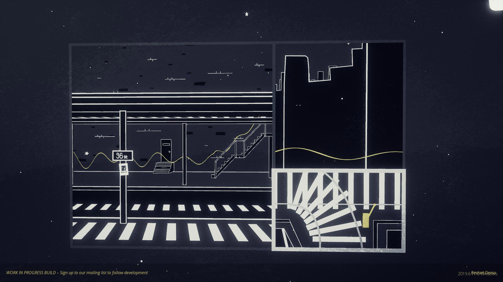 دموی Genesis Noir کلا یک ربع هم طول نمیکشد؛ اما در همین مدت وظیفهی خود را به طور کامل انجام میدهد. بازی یک عنوان ماجرایی اشاره و کلیک نه از نوع کلاسیکش، بلکه از جنس عناوینی چون Oxenfree و Kentucky Route Zero است که تعاملتان با شخصیتها و اجزای محیط، روایت داستان را پیش میبرد و خبری از معما (حداقل به شکل پیچیدهاش) نیست. سه عنصر سبک سورئالیسم، نوآر و موسیقی جز (Jazz)، هویت بازی را تشکیل میدهند. از همان متن ابتدای دمو هم میتوان فهمید با عنوانی طرف هستیم که قرار نیست خیلی عادی باشد. طبق آن، بازی در قبل، میان و بعد از حادثهی بینگ بنگ جریان دارد و برای نجات عشق خود، باید وارد دنیای در حال گسترش شوید و جلوی بسط آن را بگیرید. فضا و محیطها هم حالتی سورئال و جادویی دارند. شخصیت اصلی میان زمین و آسمان راه میرود، نوای موسیقی به ساختمان تبدیل میشود، قطار روی مدار فضایی حرکت میکند، خطوط عابر پیاده به نتهای موسیقی تبدیل میشوند و از این دست موارد که فضای متفاوت و خاصی خلق میکنند.