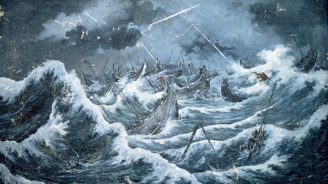 طوفانی عظیم خلیج هاکاتا را در نوردید و بیش از یک سوم کشتیهای قوبلای خان و چیزی نزدیک به ۱۳ هزار جنگجوی مغول را غرق کرد. این اتفاق ارتش مغولها را وادار به عقب نشینی کرد و مردم ژاپن هم نام این طوفان نجات بخش را «کامیکازه» – به معنای باد الهی – گذاشتند. ماجرای این طوفان جادویی وقتی جالبتر میشود که مغولها هفت سال بعد دوباره به سواحل ژاپن حمله میکنند. این بار قوبلای خان همراه با ۴۴۰۰ کشتی و با ارتشی ۱۴۰ هزار نفری برای فتح ژاپن تلاش میکند. عظمت این ناوگان آنقدر غیر قابل وصف بود که هنوز هم پس از نبرد ساحل نرماندی در جنگ جهانی دوم، بزرگترین حملهی دریایی تاریخ محسوب میشود. ژاپنیها در طول این هفت سال دیواری به ارتفاع دو متر در سواحل خود کشیده بودند تا از تکرار وقایع حملهی اول مغولها جلوگیری کنند، به همین دلیل لشکر قوبلای خان مدت زیادی را برای پیدا کردن مکان مناسب برای حمله در ساحل انتظار میکشد و یک بار دیگر، طوفانی بزرگ لشکر او را در هم میکوبد.