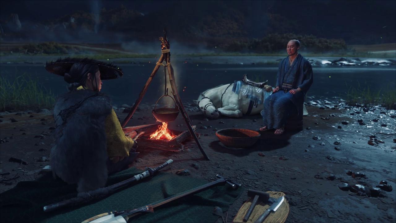 برپایی کمپ یکی از بهترین ویژگیهای تازه معرفی شده در بازی Ghost of Yotie و جزئیات جدید آن محسوب میشود. هنگامی که شب فرا رسیده و آتسو استراحتگاهی را در کنار آتش برای خود مهیا میکند کاراکترهای مهمی که اغلب بهروزرسانیهای مهمی برای تجهیزات آتسو در اختیار دارند به سوی او میآیند. این اتفاق طراحی شده تا به پلیرها کمک کند خود را برای چالشهایی که در ادامه در پیش دارند آماده کنند بدون آن که آنها را در ادامه مسیر معطل کند. از سوی دیگر مکانیزم جورنال بازی Ghost of Tsushima به نسخه جدید راه نیافته و جای آن را منوی بصری مرتبط به کاراکترها گرفته است. این بخش شامل متحدان اصلی، فروشندگان و کاراکترها بوده و در طول زمان به یک شبکه پشتیبانی برای پروتاگونیست بازی بسط داده میشود.