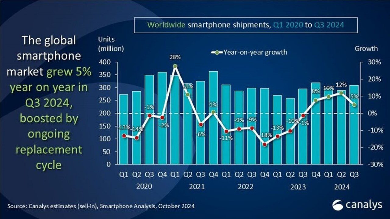 طبق گزارش اولیه شرکت Canalys درباره بازار جهانی گوشیهای هوشمند در سهماهه سوم سال ۲۰۲۴، فروش گوشیهای هوشمند به شکل سالانه و فصلی رشد داشته است. این گزارش نشان میدهد که مهمترین عامل این رشد، چرخه جایگزینی دستگاههای قدیمی بوده که از ماه ژوئیه تا سپتامبر موجب رقابتیتر شدن بازار شده است.