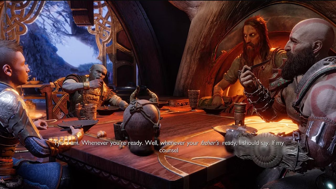 به تازگی کاربری با نام Mr. Button Boy نکتهای سرگرم کننده از بازی God of War Ragnarok استخراج کرده که میتواند لبخند بر لب هر کسی بنشاند. این نکته از صحنه دورهمی آترئوس، کریتوس، تیر (Tyr) و براک (Brok) در محل زندگی سیندری (Sindri) استخراج شده است.