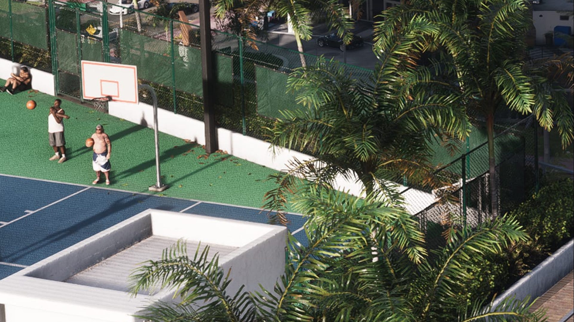 حضور بازی بسکتبال به عنوان یک فعالیت جانبی تنها در بازی GTA San Andreas وجود داشت و از آن زمان در هیچ نسخهای بهطور رسمی بازنگشته بود. اما بر اساس یک تصویر رسمی منتشر شده از بازی، این ویژگی در GTA 6 بازمیگردد. هرچند که این تصاویر بازی بسکتبال جیسون یا لوسیا را نشان نمیدهند، اما احتمالا این فعالیت صرفا برای NPCها نیست و بازیکنها به عنوان یک مینی گیم میتوانند به بسکتبال نیز بازی بپردازند.