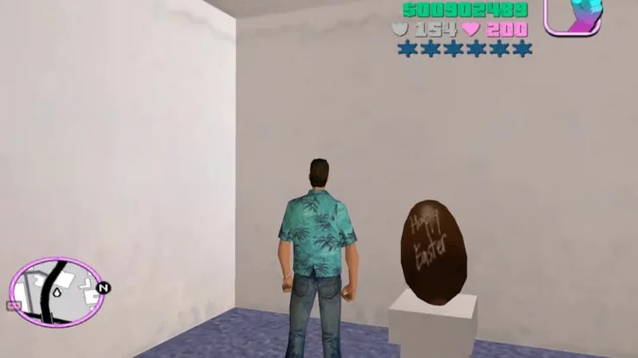 برای پیدا کردن یکی دیگر از رازهای بازی GTA: Vice City کافی است به قسمت شمالی نقشهی بازی بروید تا ساختمان خبری را پیدا کنید. یک پنجره در آن حوالی وجود دارد که میتوان از طریق آن به اتاق وارد شد. اتاقی که در آن یک ایستراگ به تمام معنا را پیدا میکنید. یک تخم مرغ شکلاتی که روی آن، متن “Happy Easter” نوشته شده است. مشخص نیست که آیا باید از این مورد به عنوان خلاقانهترین ایستراگ بازی Grand Theft Auto Vice City یاد کنیم یا به عنوان تنبلانهترین ایستراگ آن.