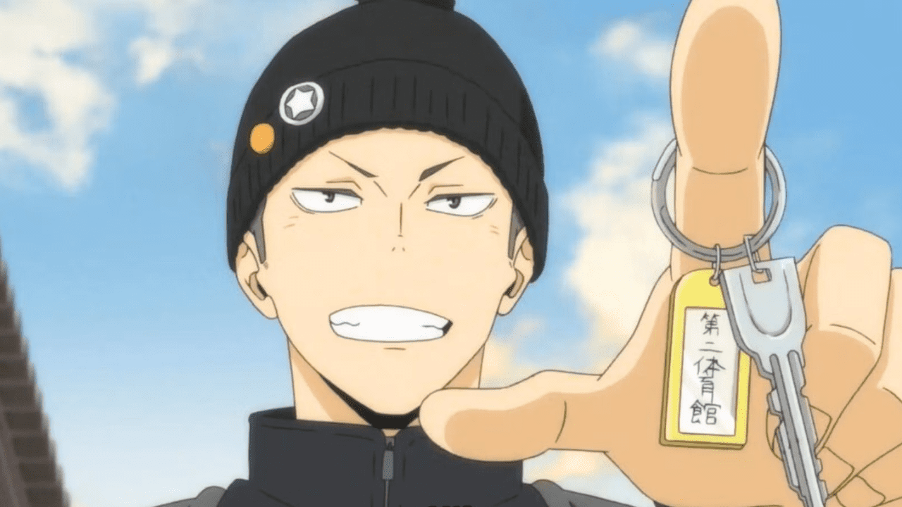 آساهی، آبشارزن قدرتی و ایس تیم والیبال دبیرستان کاراسونو، به عنوان نمونهای از شخصیت های اصلی انیمه هایکیو در این سریال حضور مییابد. در حالی که ظاهر آساهی توسط دیگران افراد خشن و ترسناک خطاب میشود، اما در واقع او شخصیتی مهربان است که آزارش به یک حشره کوچک نیز نمیرسد. این غول مهربان، گاهی اوقات از بیاعتماد به نفسی رنج برده و اجازه میدهد احساسات گناه پس از باخت مسابقات او را سرکوب کنند.
