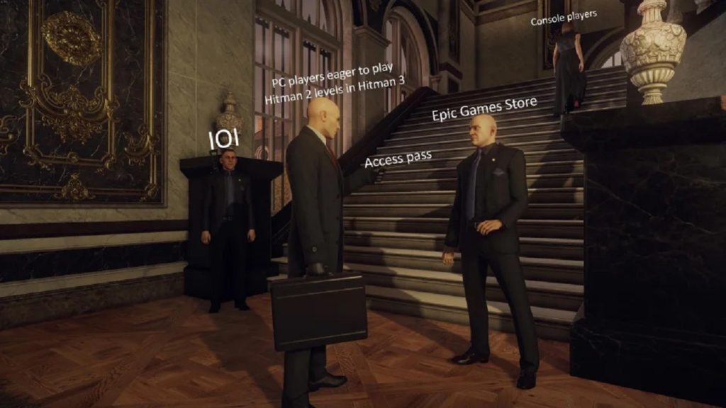 به بیان دقیقتر، استودیوی آیاو اینتراکتیو در اینباره اعلام کرده که بازیکنان پلتفرم رایانهی شخصی برای انتقال پیشرفتهای خود از استیم به فروشگاه اپیک گیمز، در ابتدا باید Access Pass مربوطه را از اپیک گیمز خریداری کنند. آن دسته از بازیکنانی که هیتمن 3 را از فروشگاه اپیک گیمز پیش خریدهاند، طی ده روز اول فرصت دارند که Access Pass نسخه Game of the Year (گوتی) بازی Hitman را به صورت رایگان دریافت کنند. با این حال، اگر از طریق رویدادهای ویژه به صورت رایگان صاحب نسخهی نخست اول هیتمن شدهاید، برای انتقال اطلاعات راهی جز خرید اکسس پس مذکور ندارید.