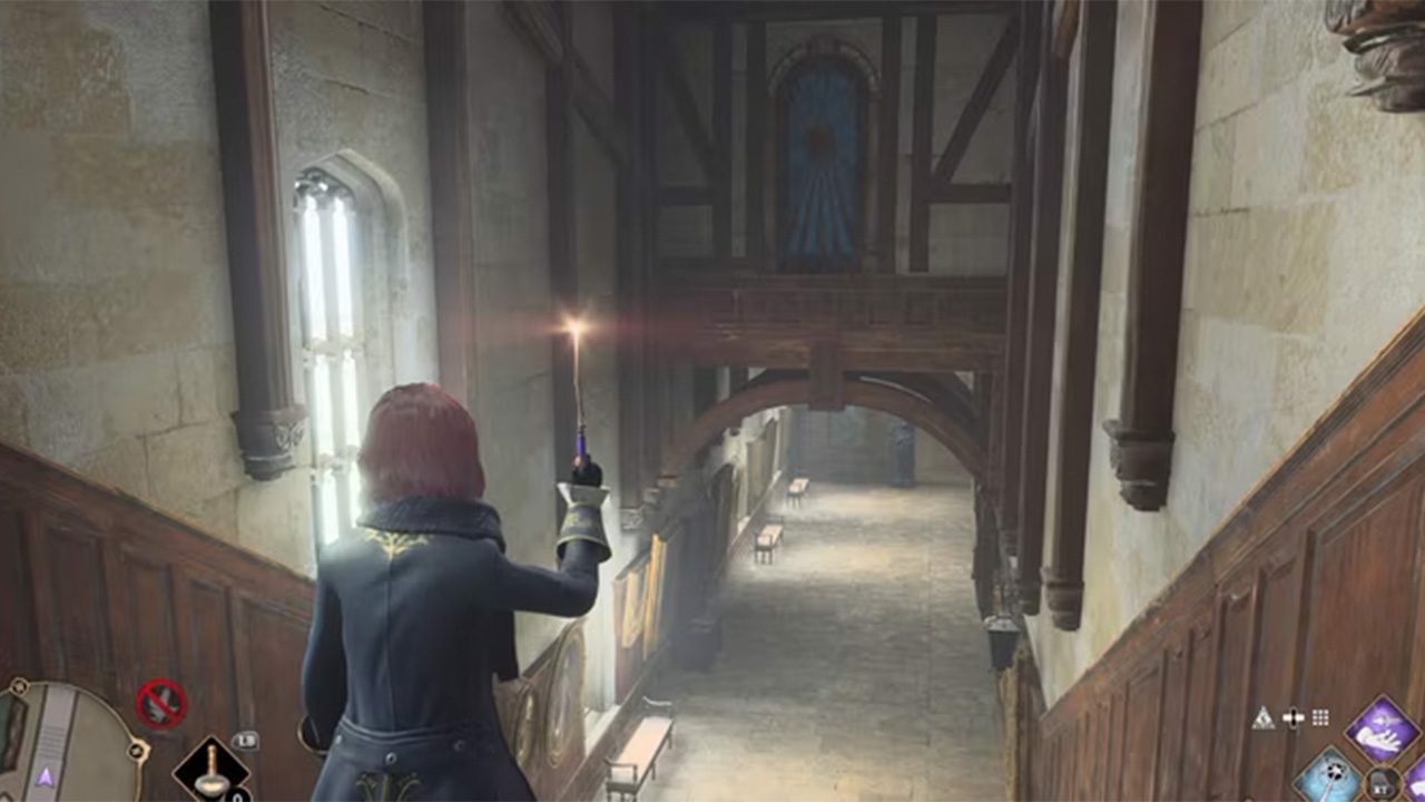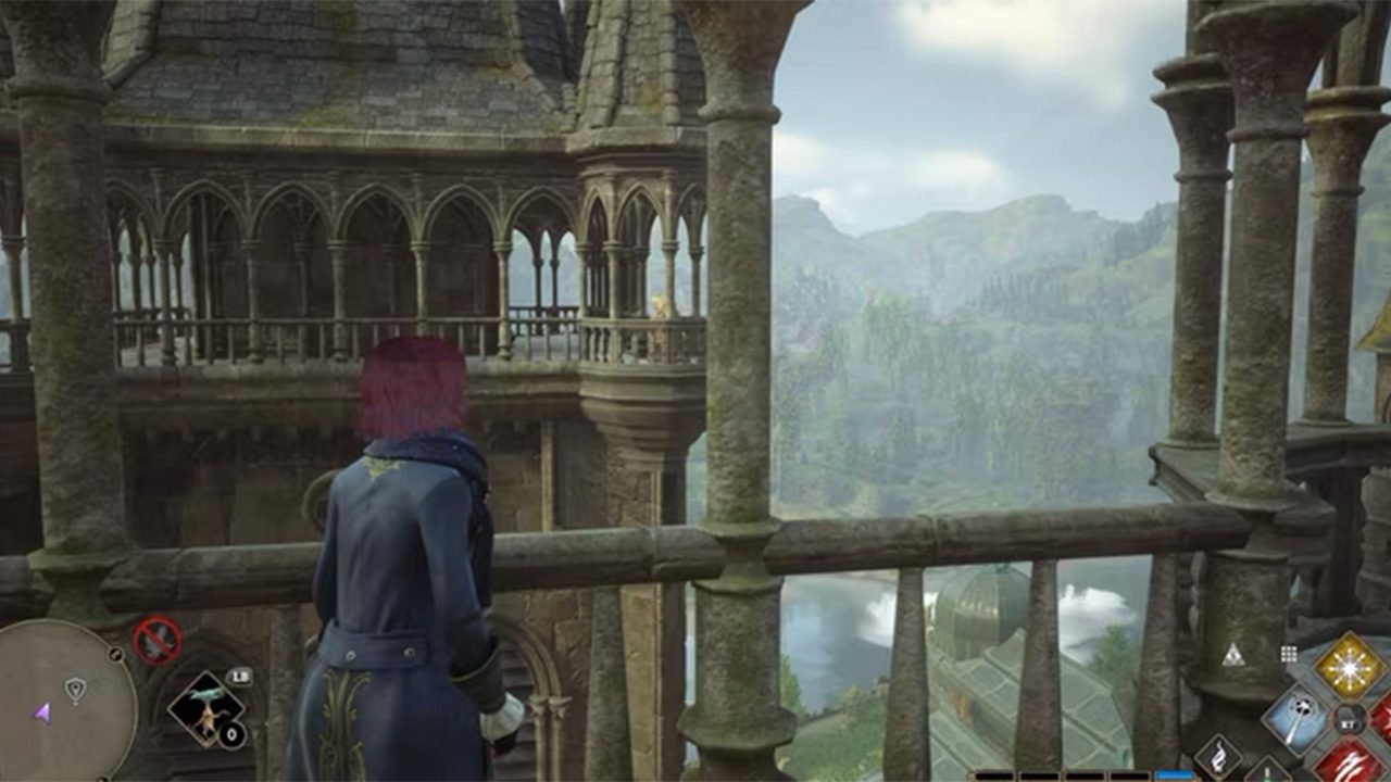 پرواز بر فراز هاگوارتز با چوب دستی پرنده که به شما اجازه تماشای زیباییهای این جهان را داده، یکی از بهترین اتفاقات بازی است که البته رازهایی نیز در خود دارد. شما در نزدیکی ورودی اصلی هاگوارتز میتوانید برجی را مشاهده کنید که در بالکن آن چند گنجه دیده شده که هیچگونه راه دسترسی مستقیمی به آن وجود ندارد.