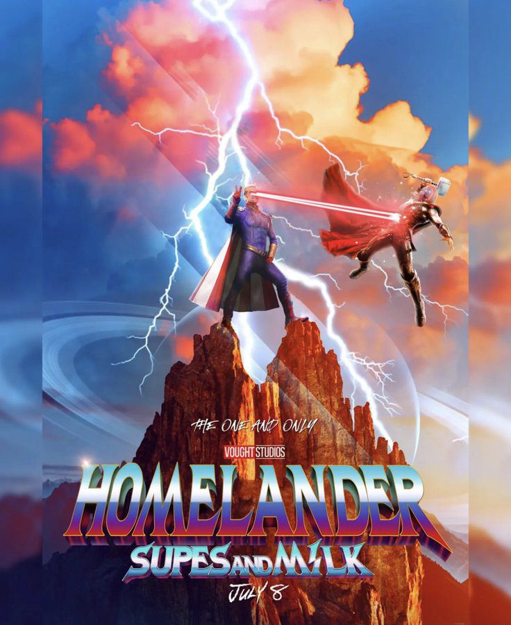 در فن پوستر جدید فیلم ثور ۴ که توسط صفحه رسمی سریال The Boys منتشر شده است، کاراکتر Homlander در حالی بهتصویر کشیده شده جایگاه ثور را بهعنوان خدای رعد گرفته است. فیلم Thor: Love and Thunder که چهارمین فیلم از فرنچایز فیلمهای ثور و دومین فیلم از این سری است که توسط کارگردان نیوزلندی، تایکا وایتیتی (Taika Waititi)، کارگردانی شده در تاریخ ۸ جولای سال جاری بر پرده سینما به نمایش درآمد.