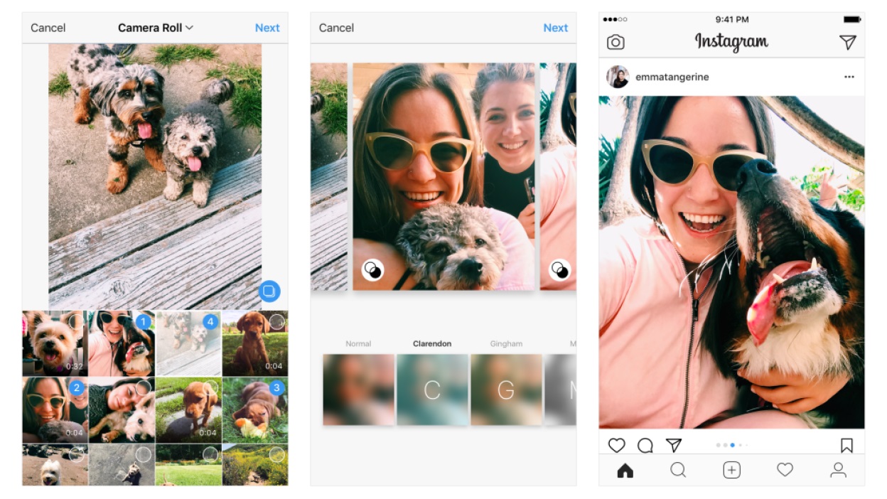 در این مرحله، طیفی از فیلترهای مختلف در اختیار دارید که نورپردازی، رنگها، کنتراست، و وضوح تصویر را به شیوههای مختلفی تنظیم میکنند. برای مثال، فیلتر Gingham فضای عکس را صاف و یکدست میکند و یا فیلتر Inkwell عکس شما را به سیاه و سفید تغییر میدهد. برای پیدا کردن فیلتر مناسب هر عکس میتوانید پیشنمایش فیلترها روی عکس موردنظرتان را مشاهده کنید.