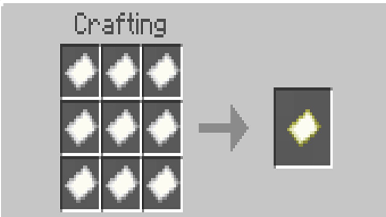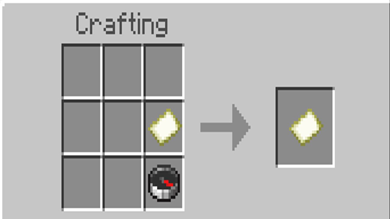 1 قطبنما و 8 کاغذ. به محض اینکه این اقلام را به دست آوردید، به یک Crafting Table بروید و باید گزینهای را ببینید که به شما اجازه میدهد یکی بسازید. اما اگر این گزینه ظاهر نشد، باید تمام اقلام را همانطور که در تصویر زیر نشان داده شده است، قرار دهید.