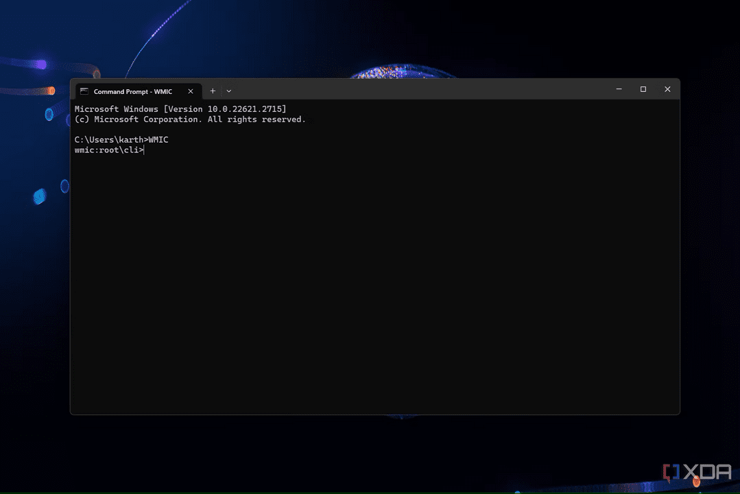 - دستور «WMIC» را تایپ کرده و Enter را بزنید.
