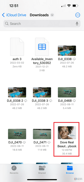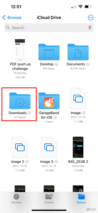 حالا میتوانید فایلهای دانلود شده در آیفون را در این پوشه پیدا کنید. در صورتی هم که فایل را پیدا نمیکنید، میتوانید نام آن را در قسمت جست و جو وارد کرده و آن را پیدا کنید.