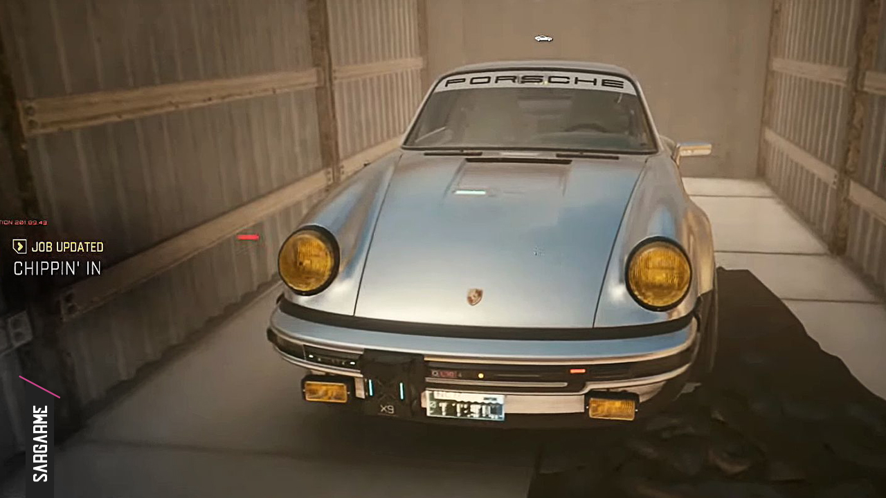 برای دستیابی به این کانتینر، باید به بالای سکویی که سمت راست قرار گرفته بروید و با روشن کردن دستگاه، کانتینر را پایین بیاورید. از سکو پایین آمده و با استفاده از کلیدی که گریسون داده بود، درب کانتینر را باز کنید. زمانی که وارد کانتینر میشوید، جانی از V میخواهد که پارچه روی ماشین را کنار بزند. بعد رونمایی پورشه911، جانی به V اجازه میدهد که اگر میخواهد با آن یک دور بزند!