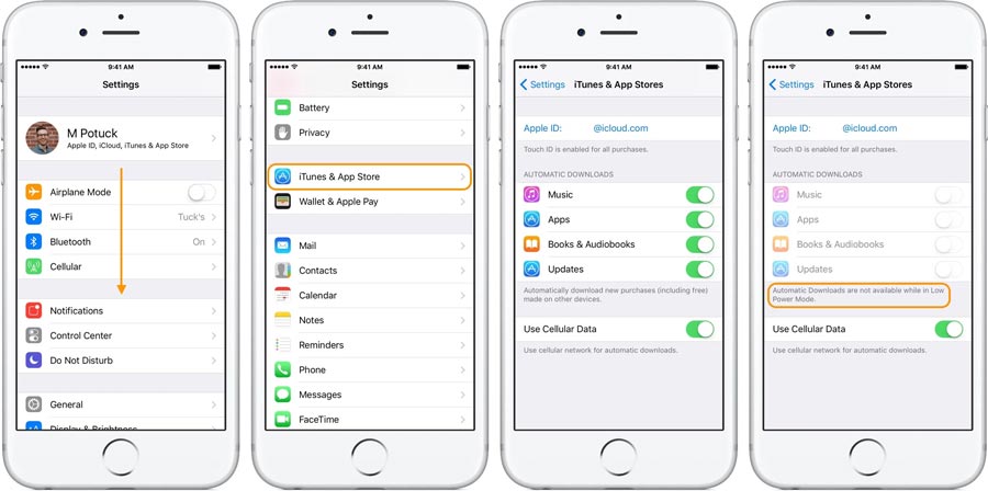 برای جلوگیری از به روزرسانی خودکار در سیستم عامل iOS ابتدا به بخش تنظیمات گوشی وارد شوید و گزینه iTunes & App Store را انتخاب کنید. سپس در قسمت Automatic Downloads گزینه Updates را غیر فعال کنید.