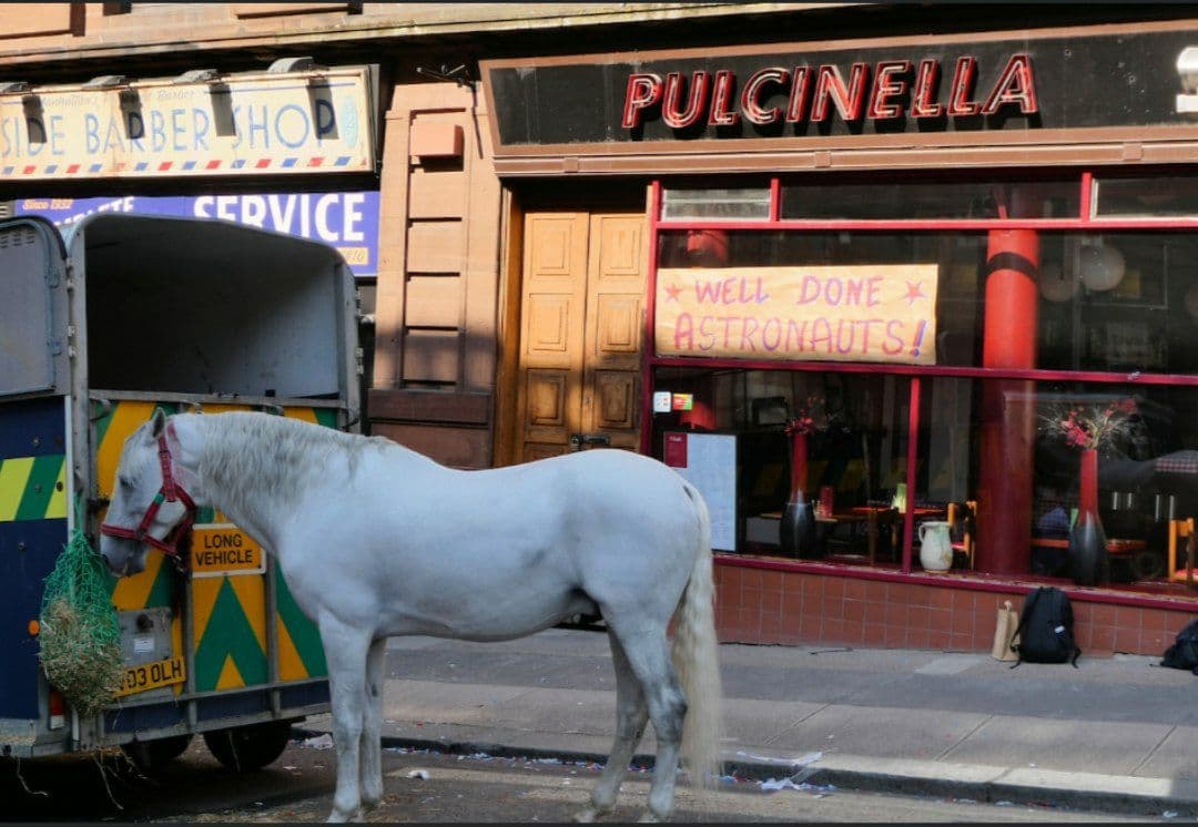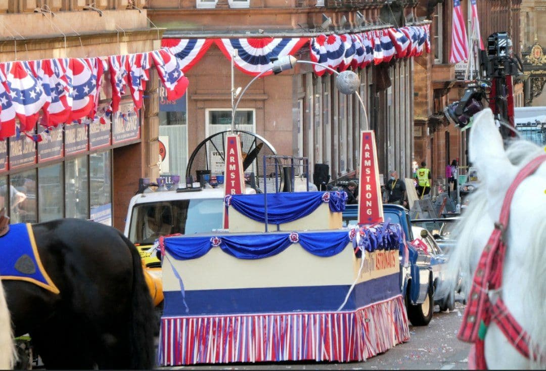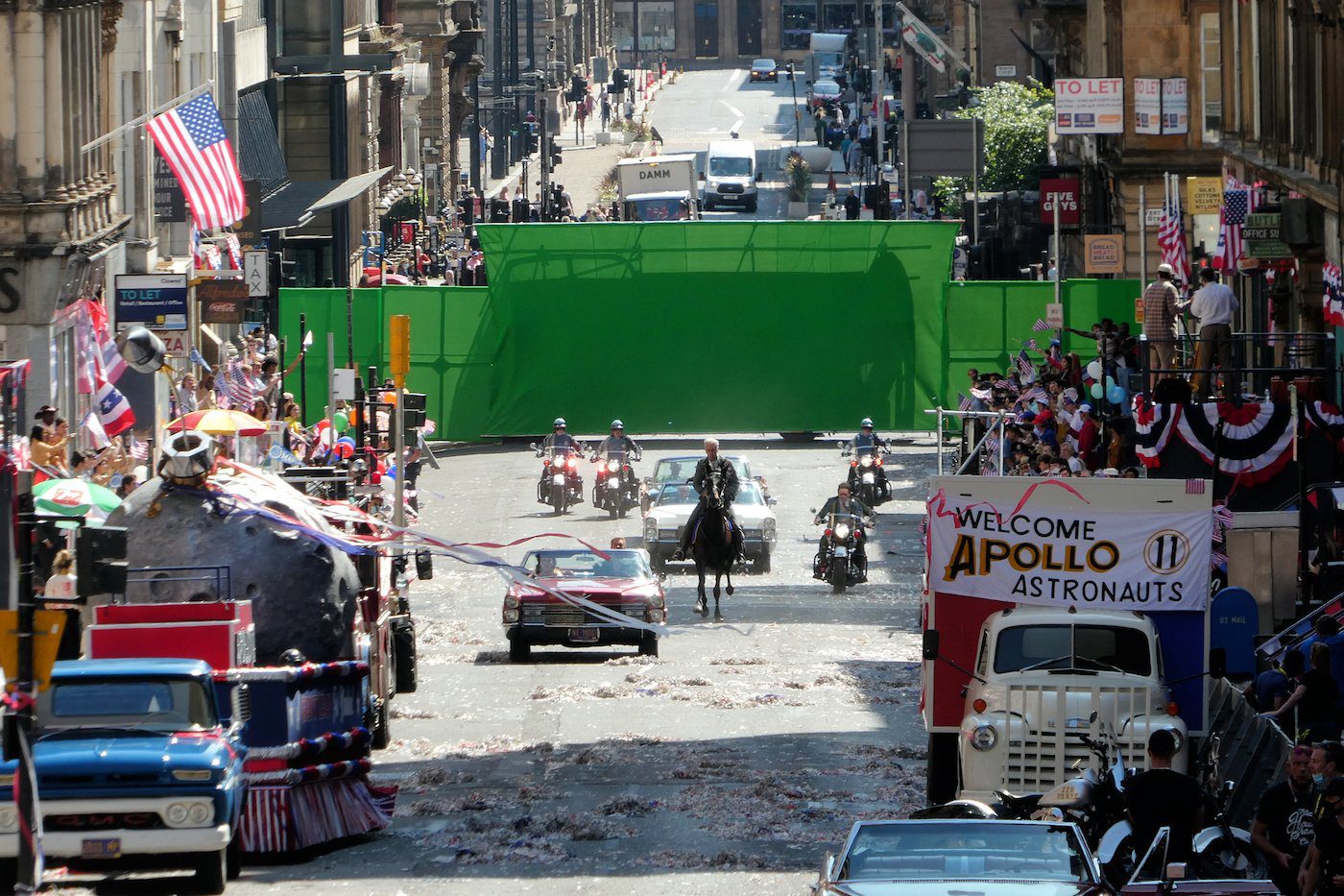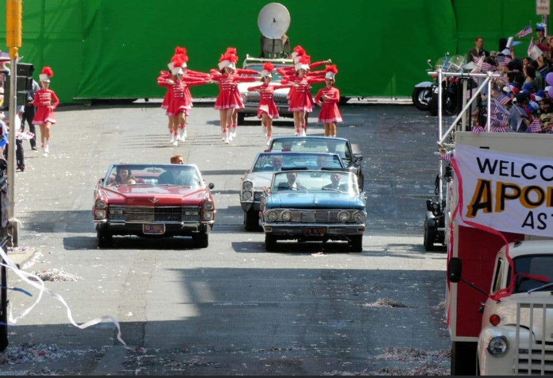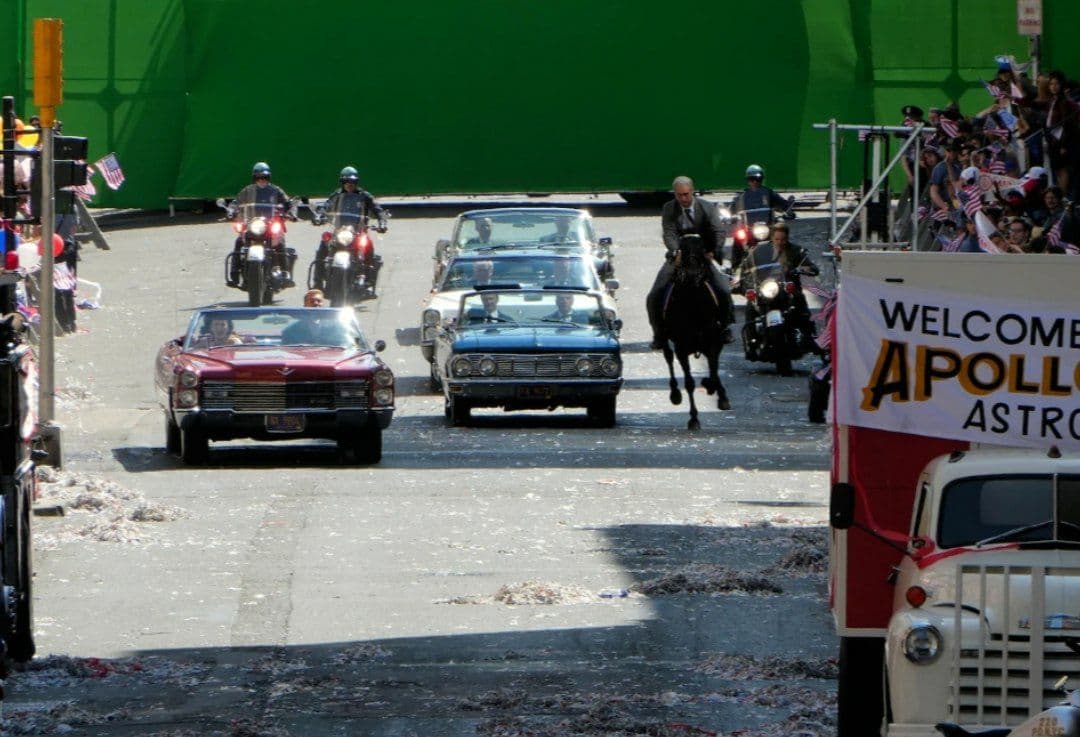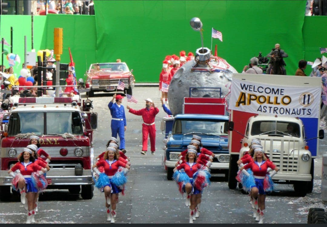 همانطور که در تصاویر ثبت شده توسط گوردون اسمیت (Gordon Smith) دیده میشود در این صحنه بسیاری از جشنها و مراسمات رژه آپولو یازده در این فیلم بازسازی خواهد شد. در این رژه از نیل آرمسترانگ (Neil Armstrong)، مایکل کالینز (Michael Collins) و باز (Buzz) تجلیل و قدردانی شد. گوردون اسمیت عکاس تصاویر ثبت شده در رابطه با این صحنه عنوان کرده است که ایندیانا جونز در این رژه سوار بر اسب بوده و در این صحنه حضور دارد.