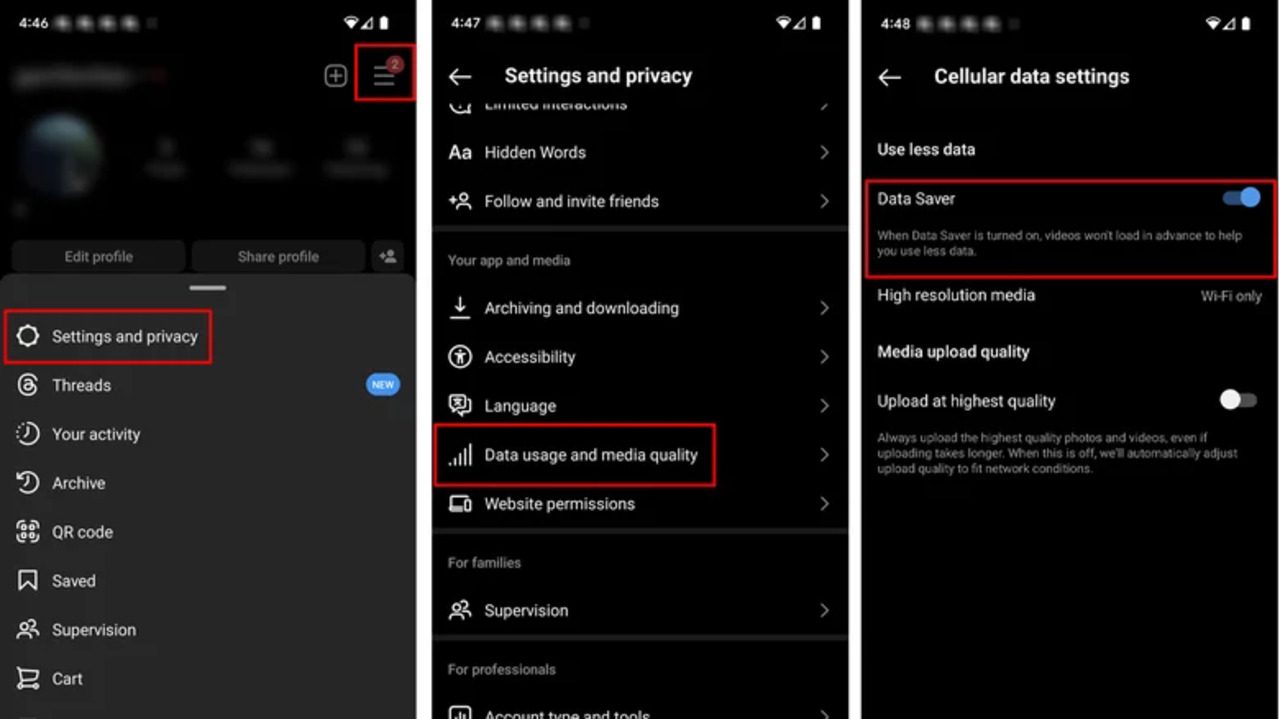 برای فعال کردن قابلیت صرفهجویی در مصرف داده در اینستاگرام: