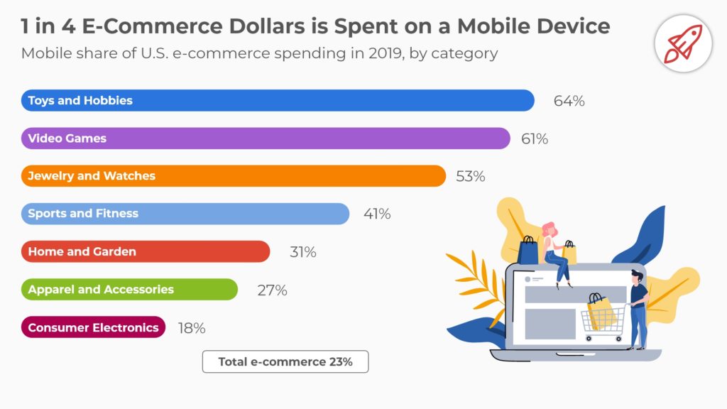 - در حال حاضر، یک دلار از هر ۴ دلاری که در تجارت الکترونیک خرج میشود، از طریق گوشیهای همراه است. اسباب بازی و فراغت، پر فروشترین کتگوری در حوزه تجارت آنلاین بودهاند. پس از آن، بازیهای ویدئویی، کنسولها و ابزار جانبی قرار دارند. جواهرات و ساعت و ابزارهای ورزشی در مقامهای بعد قرار دارند.