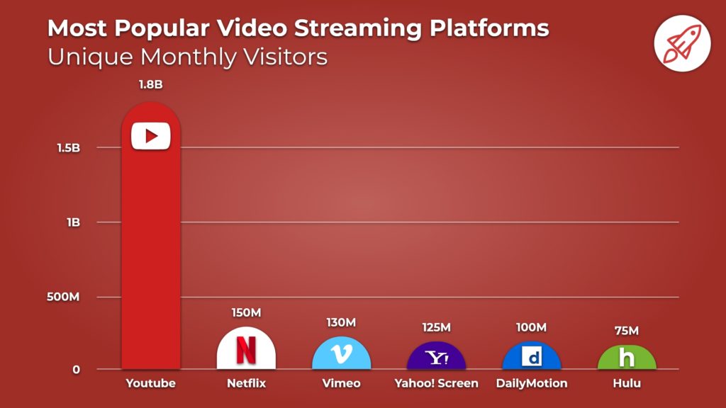 - یوتیوب (با ۱.۸ میلیارد بازدید منحصر به فرد ماهانه)