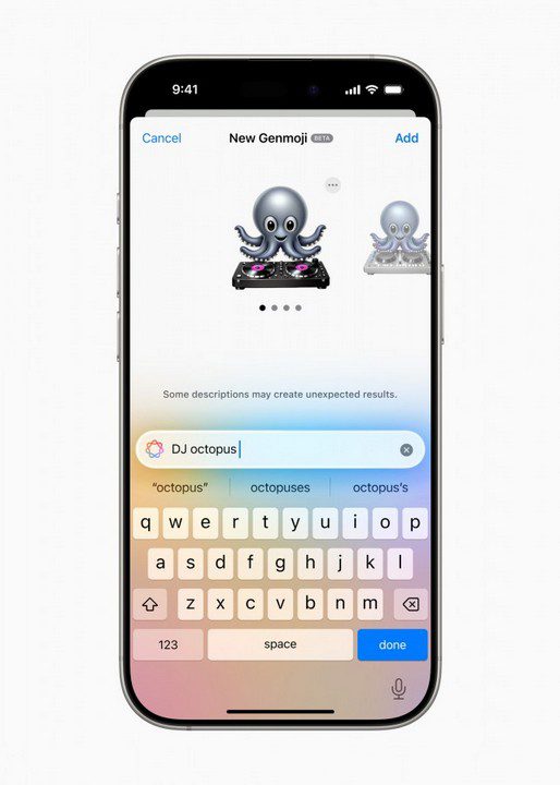 یکی از جذابترین امکانات جدید، برنامه Image Playground است که به کاربران اجازه میدهد تصاویر افراد را با استفاده از هوش مصنوعی به صورت انیمیشن یا تصویرسازی استایل دهند. این برنامه همچنین به اپلیکیشن پیامها نیز ادغام شده است. ابزار Genmoji نیز به کاربران اجازه میدهد ایموجیهای شخصیسازیشدهای براساس متن ایجاد کنند. این ایموجیها در دستگاههای iOS 18.1 و 18.2 بهصورت ایموجی معمولی نمایش داده میشوند.