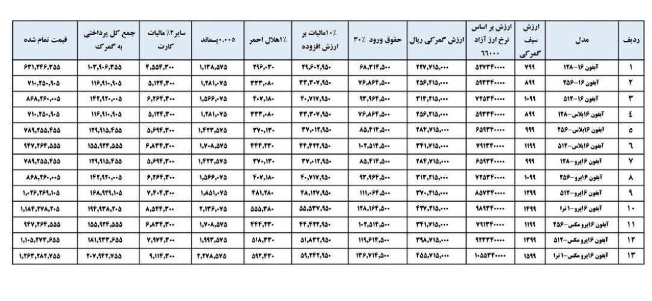 تعرفههای جدید واردات آیفون